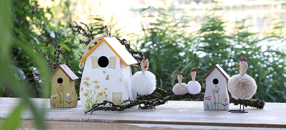 Oppdag mer...Frisk vårpåskepynt - kaniner og kyllinger, kyllinger og mange andre dekorative figurer til våren