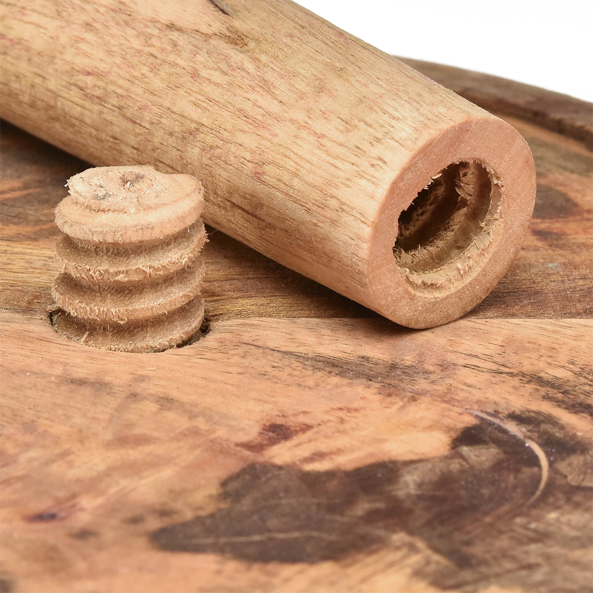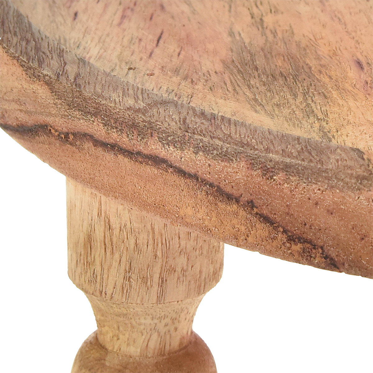 Den naturlige årringen og den varme fargen til mangoveden gjør hvert kakestativ unikt. Spesielt i kombinasjon med andre treelementer som et eikebord, en furukommode eller en skjenk av kirsebærtre, utfolder etageren sin fulle effekt og skaper et harmonisk helhetsbilde.