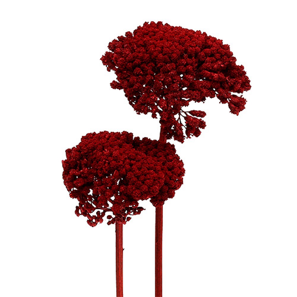Achillea i vinrød er i en stor pose som veier totalt 1 kilo og består av planter i forskjellige størrelser og former. De tørkede blomstene kan være omtrent 45 til 60 centimeter store, med hodene omtrent 8 til 10 centimeter store.