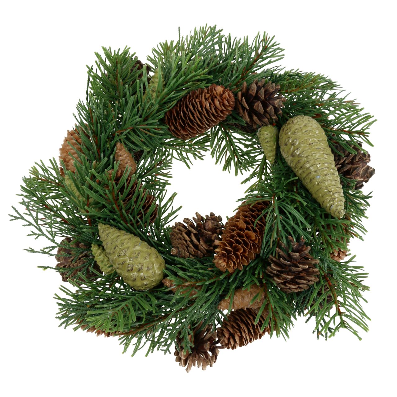 Adventskrans, grankrans med naturlige og kunstige kongler, grønn dørkrans Ø30 cm, julepynt