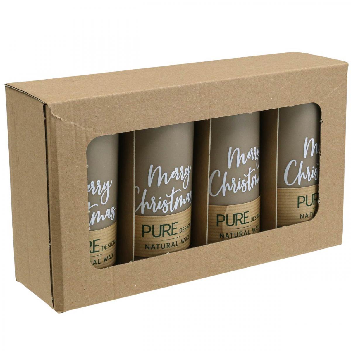 Du får fire flotte lys til adventskransen eller bordpynten til jul. Du finner også PURE søylelys i rødt og hvitt i butikken vår.