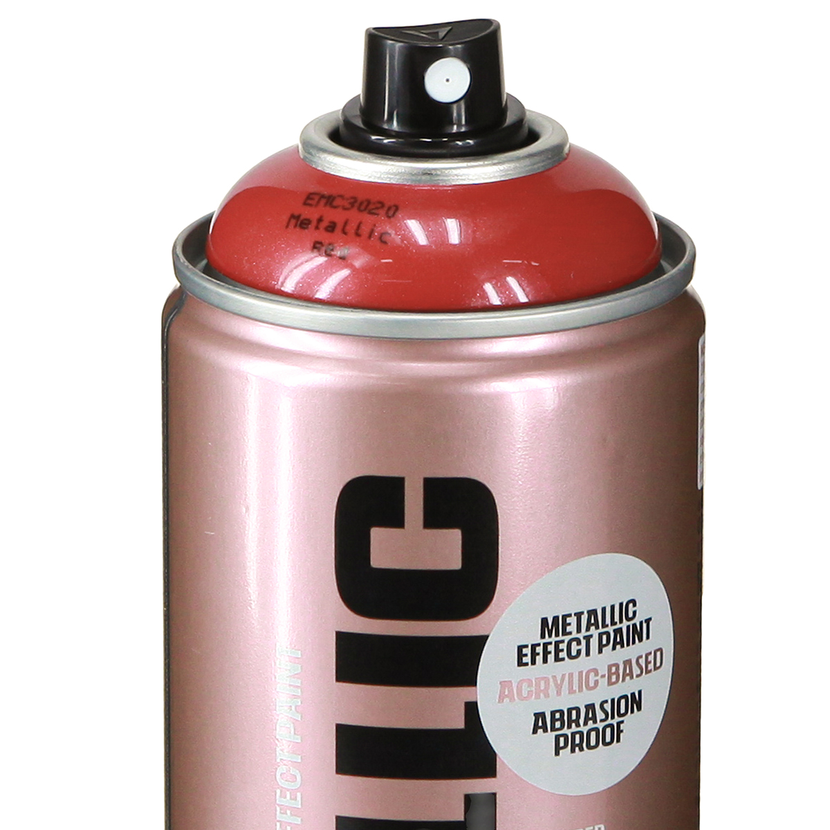 En boks med metallisk akrylspray rød har et nettovolum på omtrent 400 milliliter. Rist sprayboksen godt før og under bruk, og snu boksen opp ned etter bruk for å åpne ventilen.