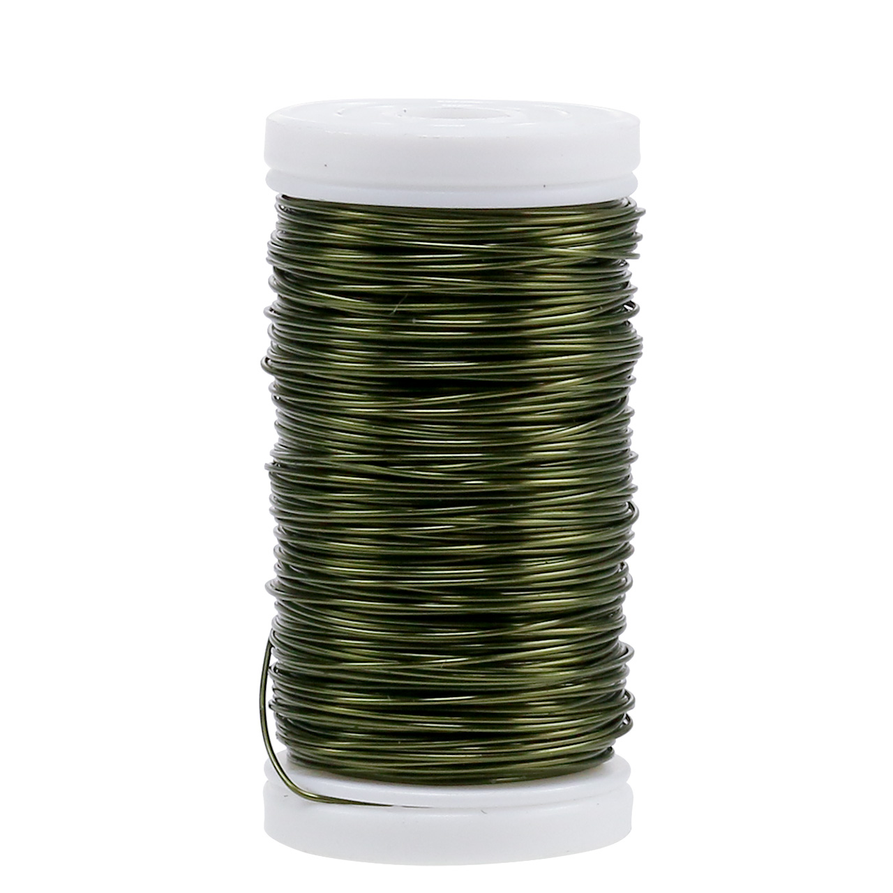 Du mottar den dekorative emaljerte ledningen i olivengrønn på en opphengbar plastrulle, som tråden enkelt kan vikles ut gjennom, og som resulterer i en totalvekt på ca. 100 gram. Selve viklingstråden er omtrent 50 meter lang og omtrent 0,50 millimeter i diameter.