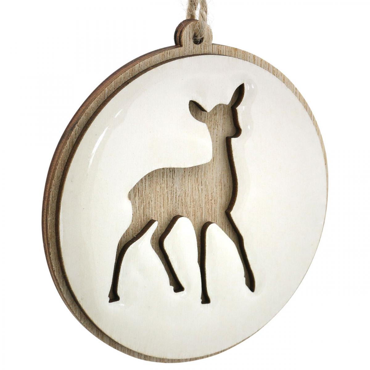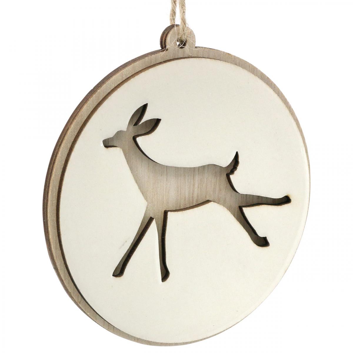 Produktnavn: Anheng med hjort, dekorasjonsmedaljong, tredekor, advent Ø9,5cm 6stk