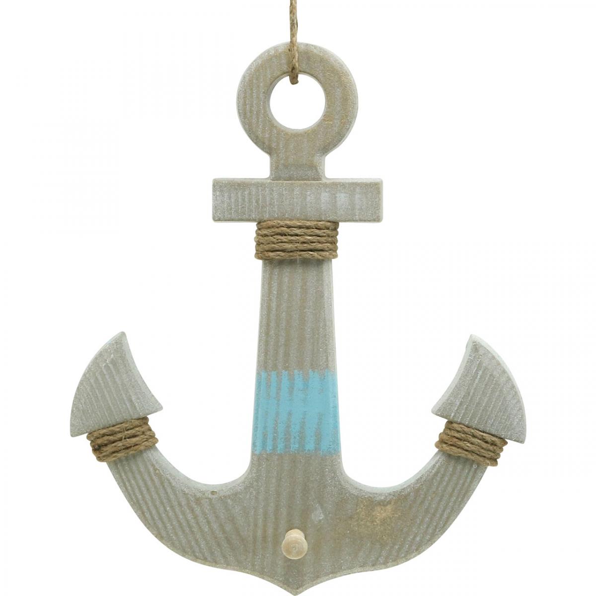 Det maritime anhenget som anker kommer til deg med en jutesnor. Du kan henge tredekorasjonen på natursnoren eller på utsparingen i treet.