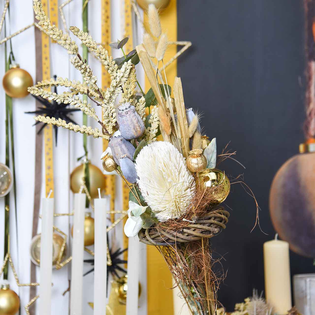 Dette betyr at du ganske enkelt kan feste silkeblomsten i en egen klasse i tørt skum eller bearbeide den til kranser eller utstillingsvindusdekorasjoner. Den dekorative blomsten i seg selv blir et blikkfang i en vase. Sammen med andre kunstige planter eller silkeblomster til høsten - i grønt, kremhvit, oransje, rødt eller lilla - kan du deretter lage en kunstig blomsterbukett som lar høstfargene skinne i all sin prakt.