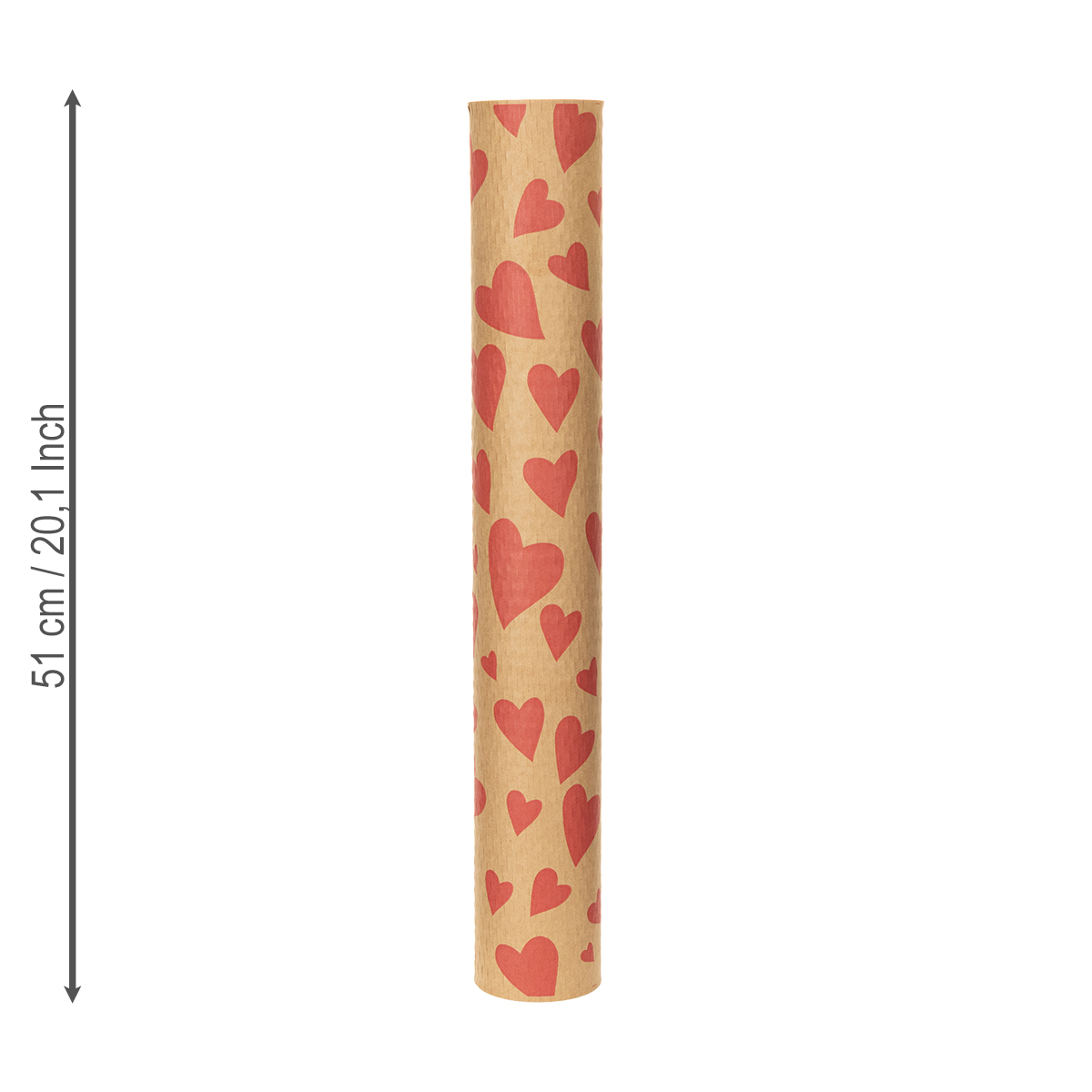 Vårt bærekraftige gavepapir i varm rød og naturlig brun er mye mer enn bare enkel emballasje. Med en lengde på 25 meter og en bredde på 51 centimeter er det nok materiale til å pakke inn gaver i alle størrelser. De sjarmerende hjertene kombinert med den naturlige papirfargen gir et snev av romantikk og stil til enhver gave. Enten du leter etter kreativ gaveinnpakning til blomsteroppsatser, gjør-det-selv-prosjekter eller beskyttende innpakningsmateriale – dette papiret er utrolig allsidig!
