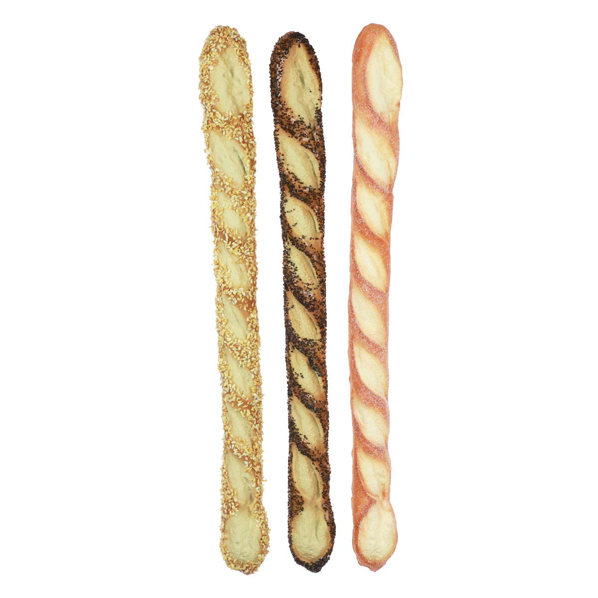 Baguette-matreplikaer, 45 cm, bakeridekorasjon, tilsynelatende realistisk, sett med 3 assorterte varer