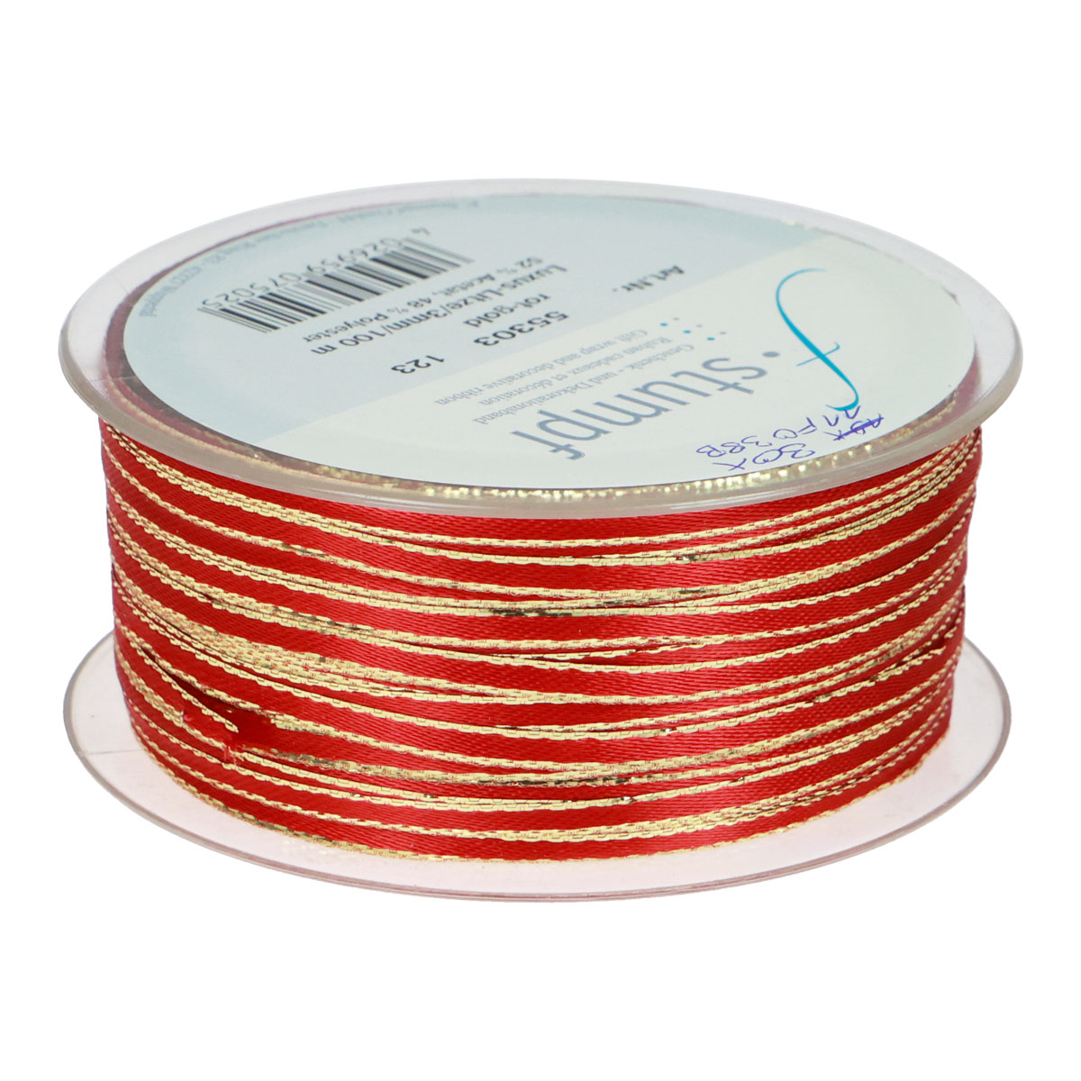 Bånd gavebånd strandet bånd rødt gull 3mm 100m