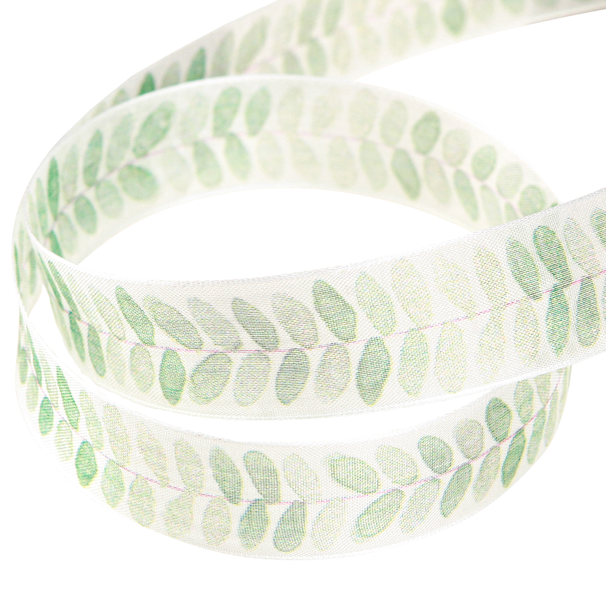 Bånd Grønne Blader Organza Bånd Dekorbånd 25mm 18m