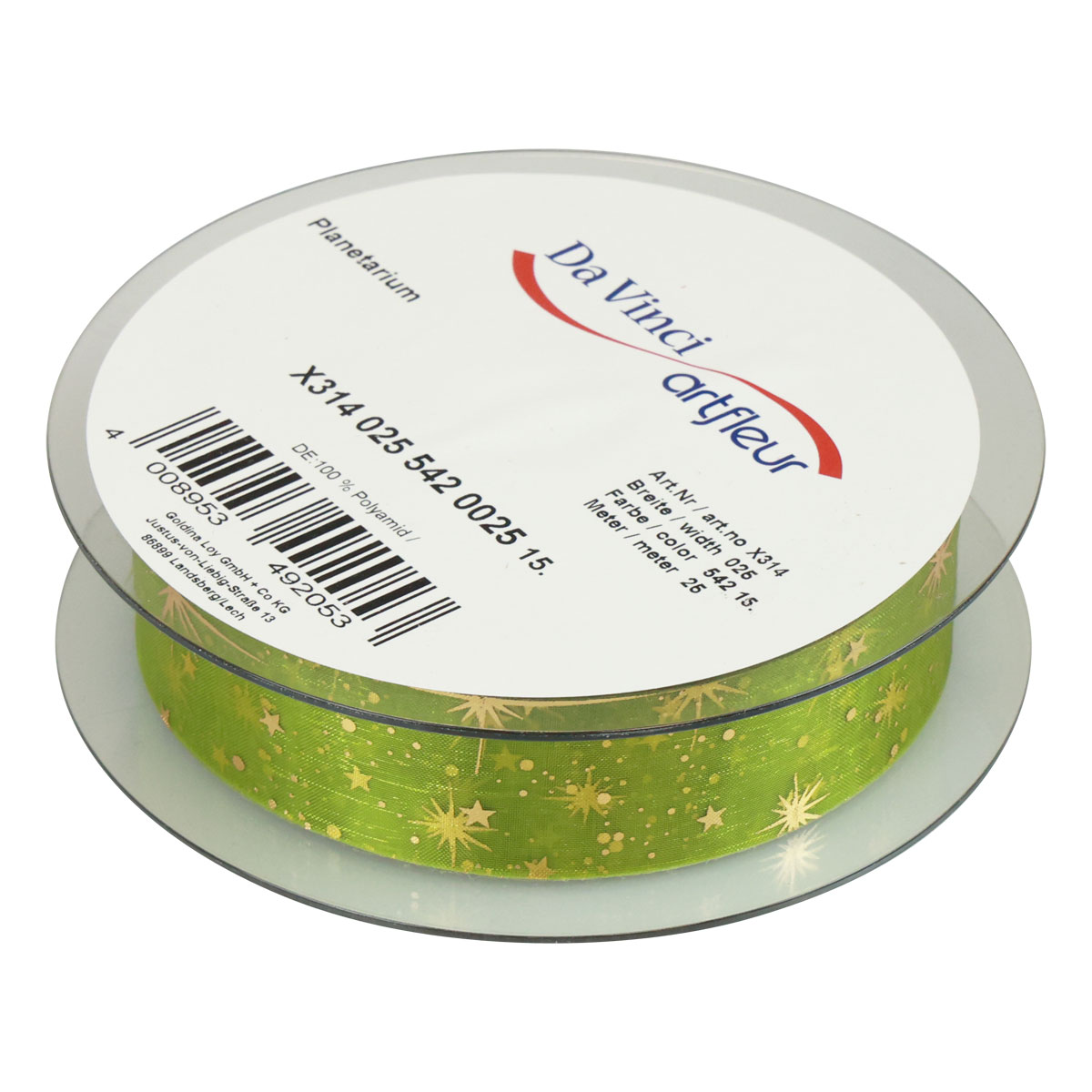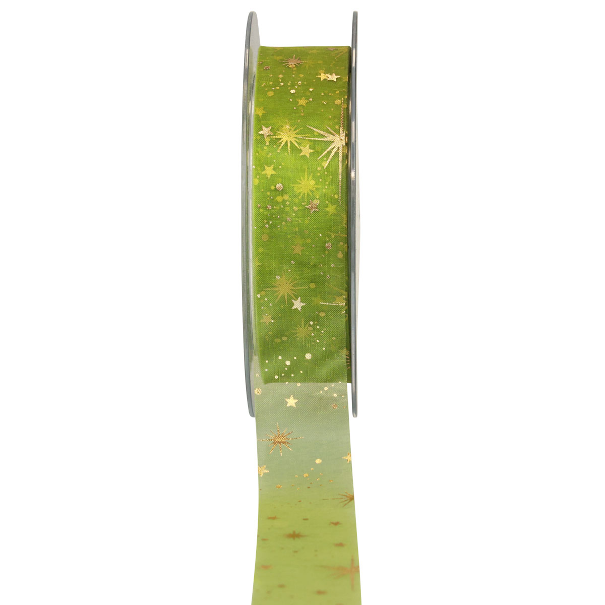 Bånd jul, organza bånd grønt stjernemønster 25mm 25m