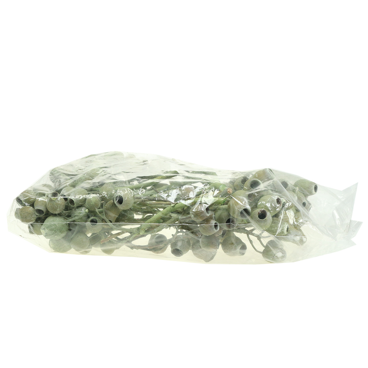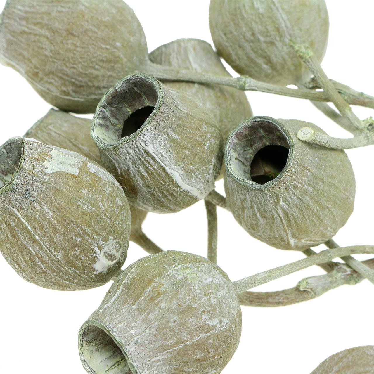 Kapselfrukten er sterkt lignen, ekstremt stabil og kan derfor bearbeides individuelt. De ble veldig forsiktig farget i grønt og fikk en spesiell effekt slik at grenen ser ut som om den var frostet. Du vil motta de dekorative grenene med frukt i en pakke med 20. Hver frukt er omtrent 2 til 5 centimeter stor.