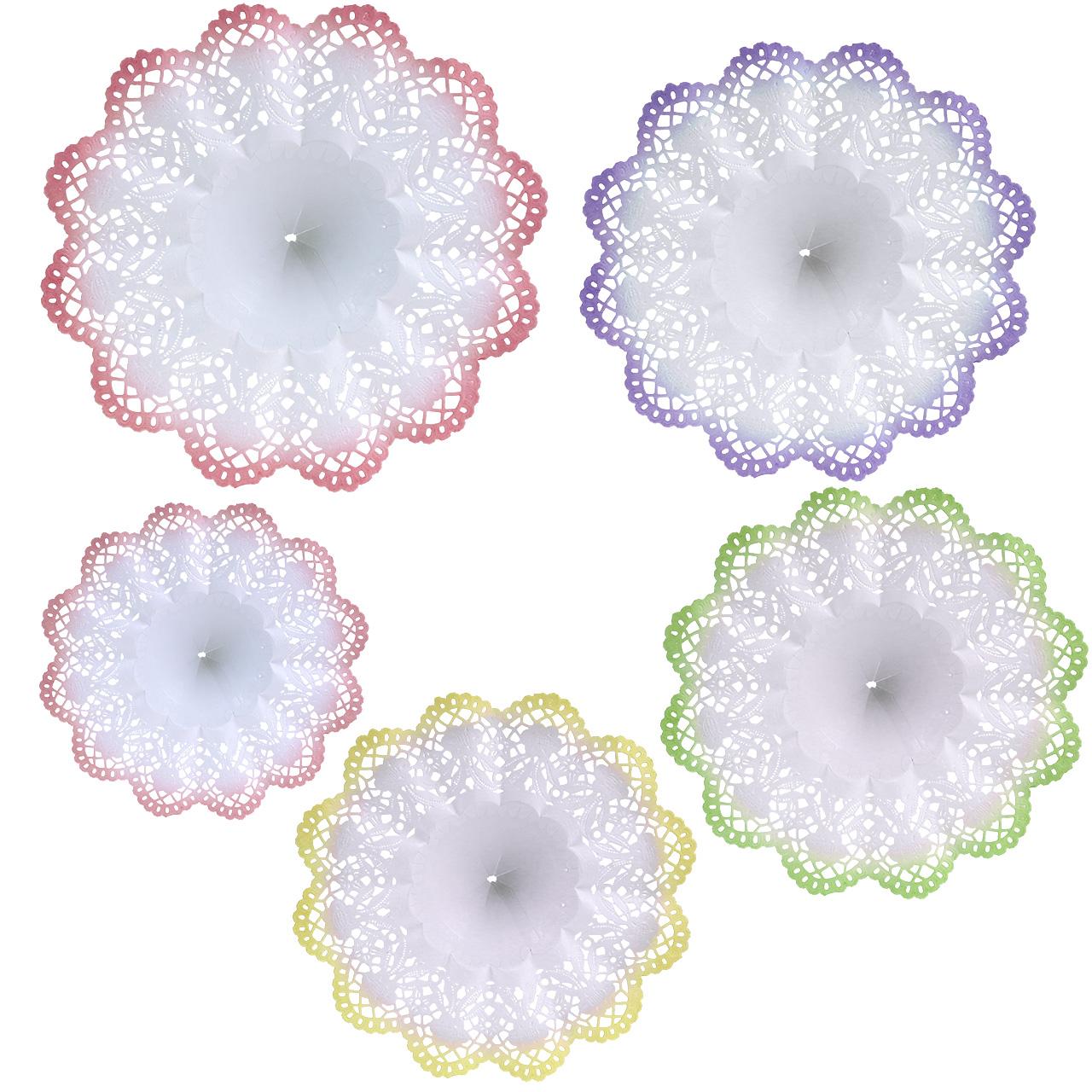 Hver blanding består av 25 Batik Biedermeier mansjetter, leveres til deg i plastemballasje og inneholder mansjetter, hvis kanter er valgfritt farget i rosa, grønn, lilla, gul eller gammelrosa.