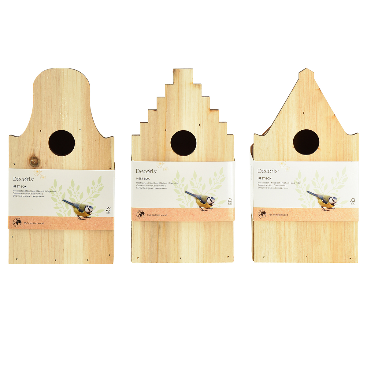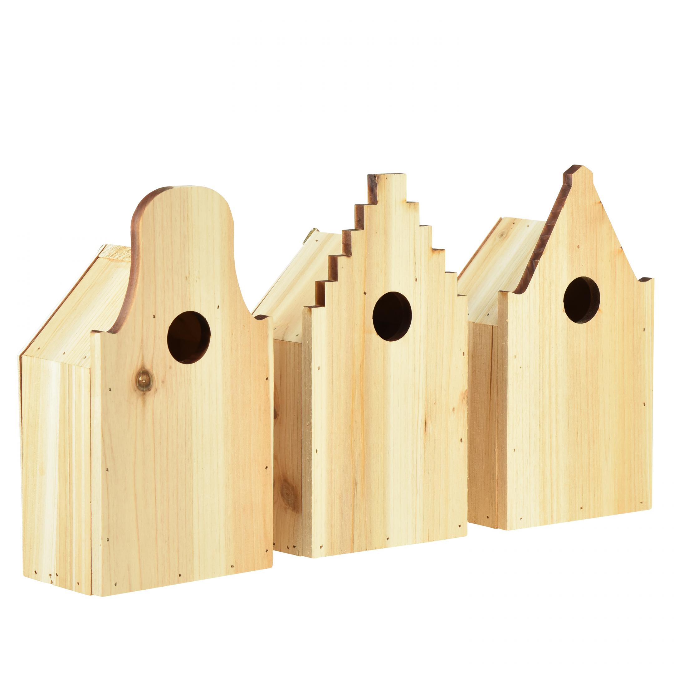 Du vil motta fuglehuset i tre i pakker med 3. De grunnleggende dimensjonene er de samme. Inkubatorene kan kjennetegnes ved sine attraktive forskjellige fasader.