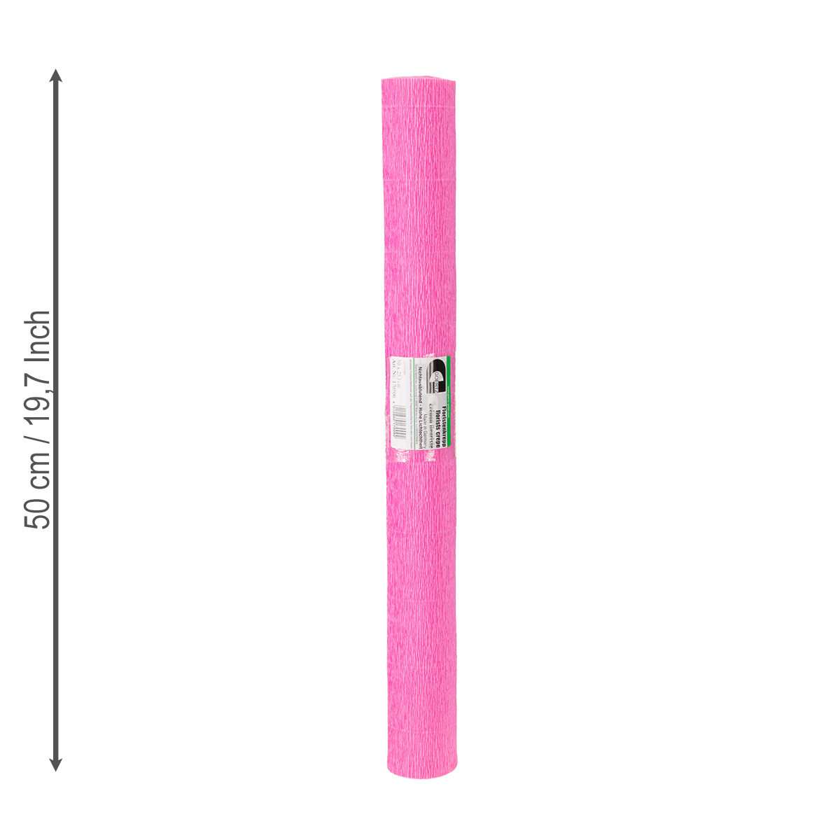 Du mottar blomsterhandler crepe papir i lyserosa med de omtrentlige målene 50 x 250 centimeter som rulle. Denne veier rundt 160 gram.