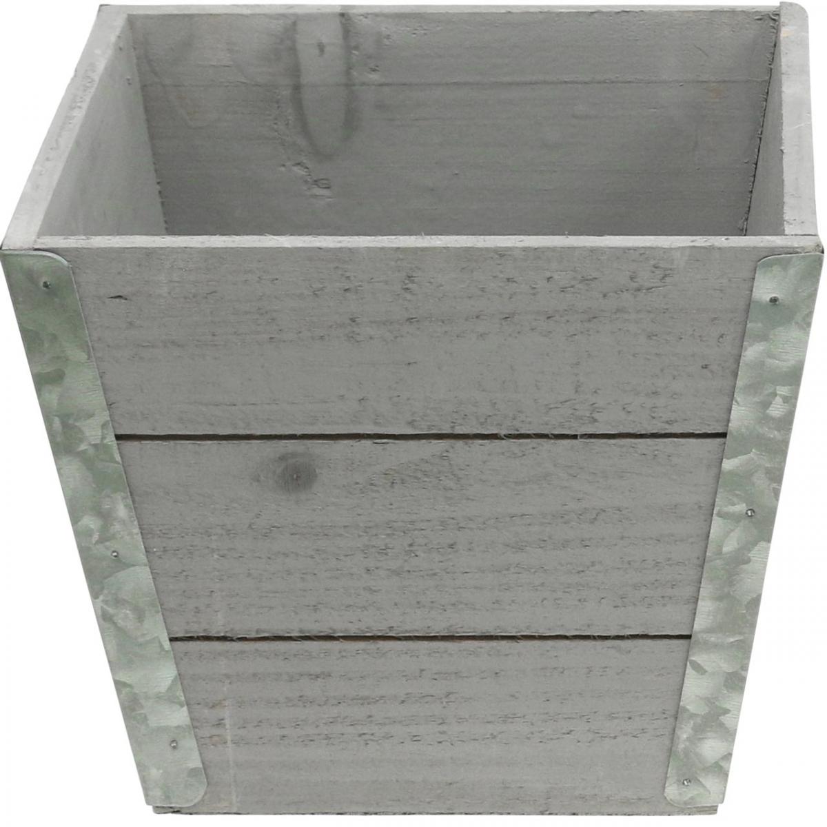Blomsterkasse plantekasse i tre shabby chic grå 19x19x15,5cm
