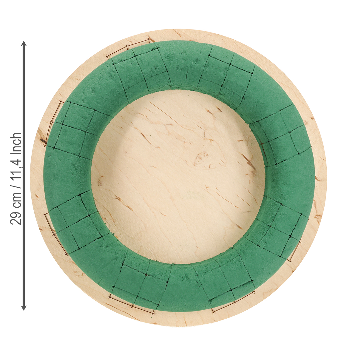 Produktnavn: Blomsterkrans på tre, vått blomsterskum, grønn Ø29 cm