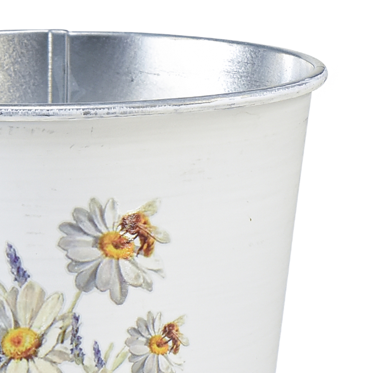 Blomsterkrukke metall plantekasse hvite blomster 12,5cm H11,5cm