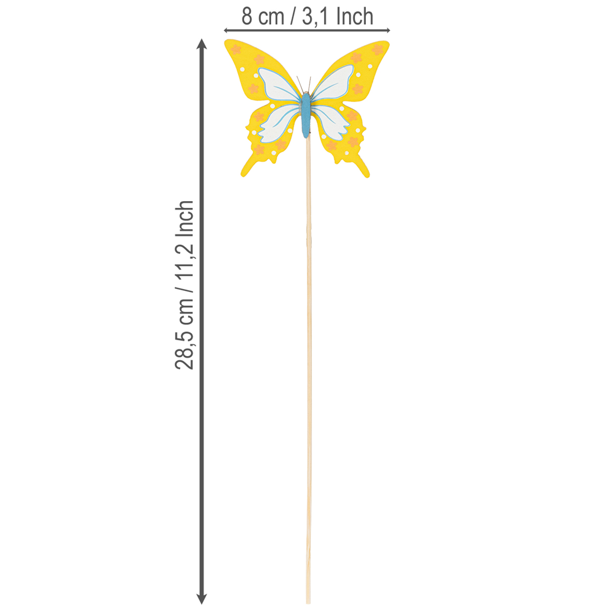 Blomsterpinner, hobbyartikler, sommerfuglmotiv for dekorering av gaveinnpakning, 28,5 cm, 12 stk.