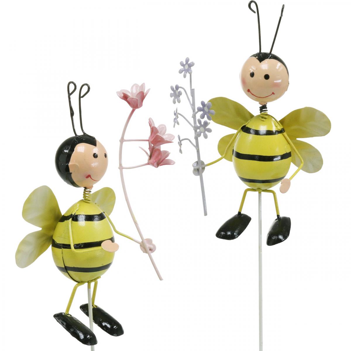Blomsterplugg bie med blomst, metalldekor vårsommer 4stk