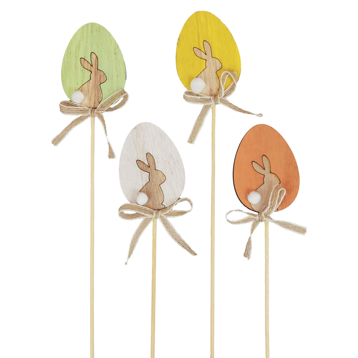 Blomsterplugg påskepynt treegg med kanin fargerik 5×7cm 12 stk