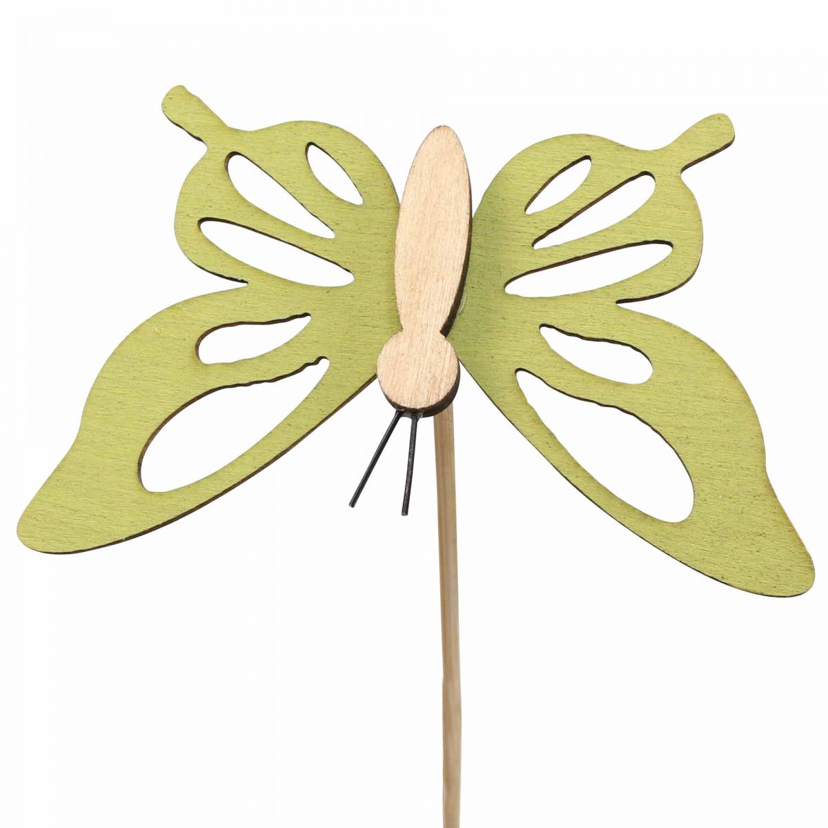 Blomsterplugg sommerfugl deco trefarget 8,5cm 12stk