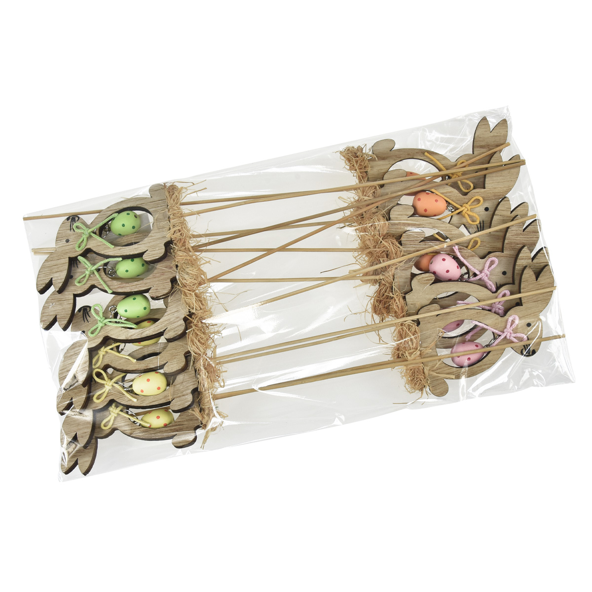 Blomsterplugg tre dekorativ plugg kanin med egg 5x8,5cm 12 stk
