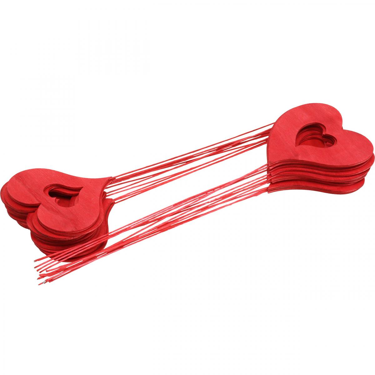 Blomsterplugghjerte, tredekorasjon for festing, Valentinsdag, dekorativ plugg rød, morsdag L31-33cm 24 stk.