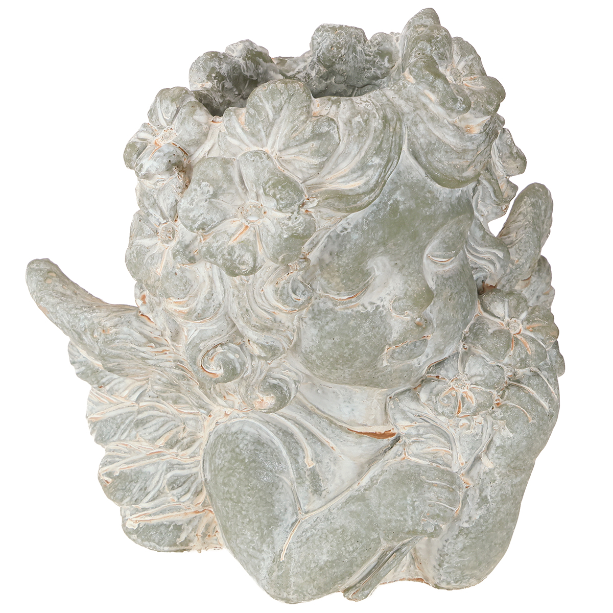 Støpt steinengel – figur og blomsterpotte i ett