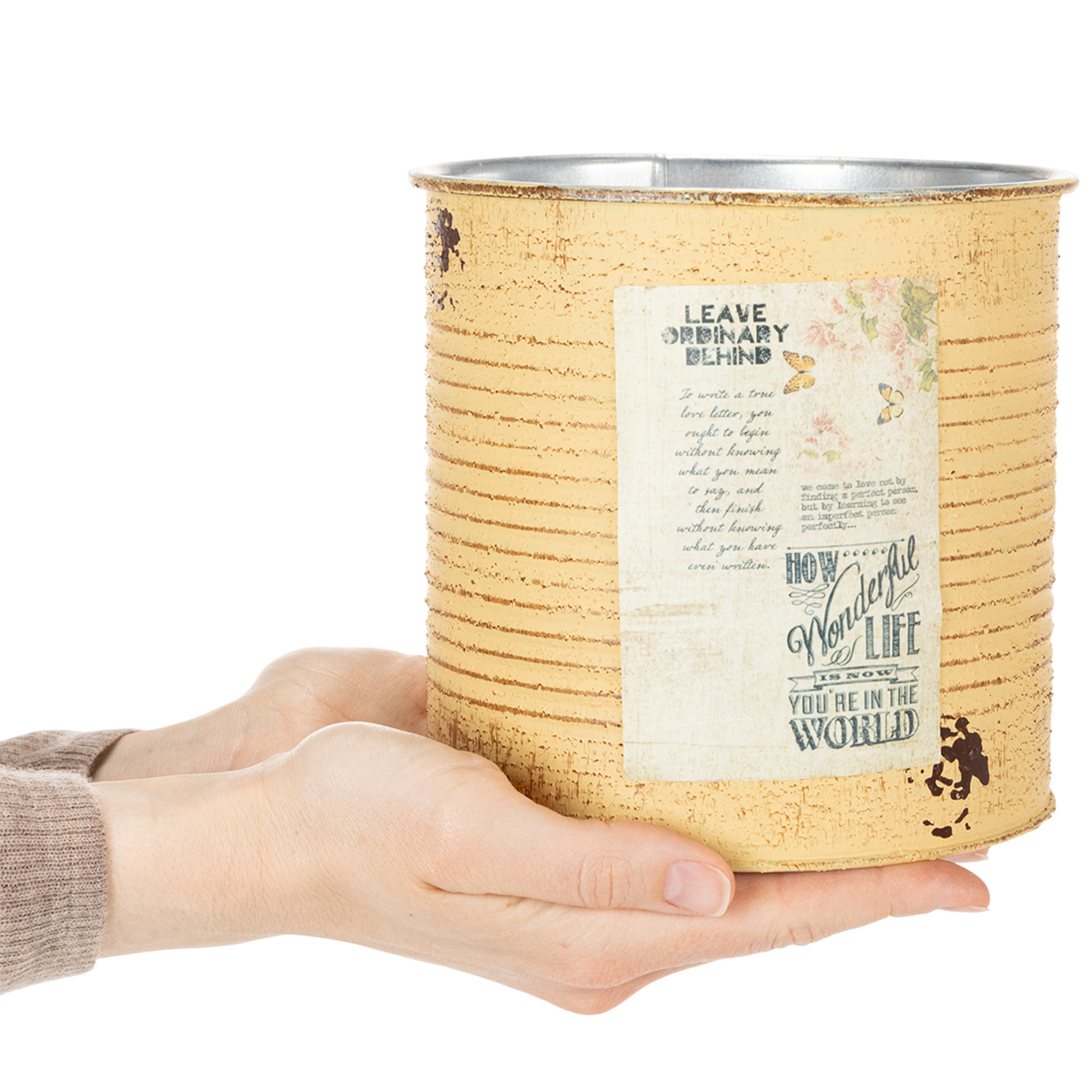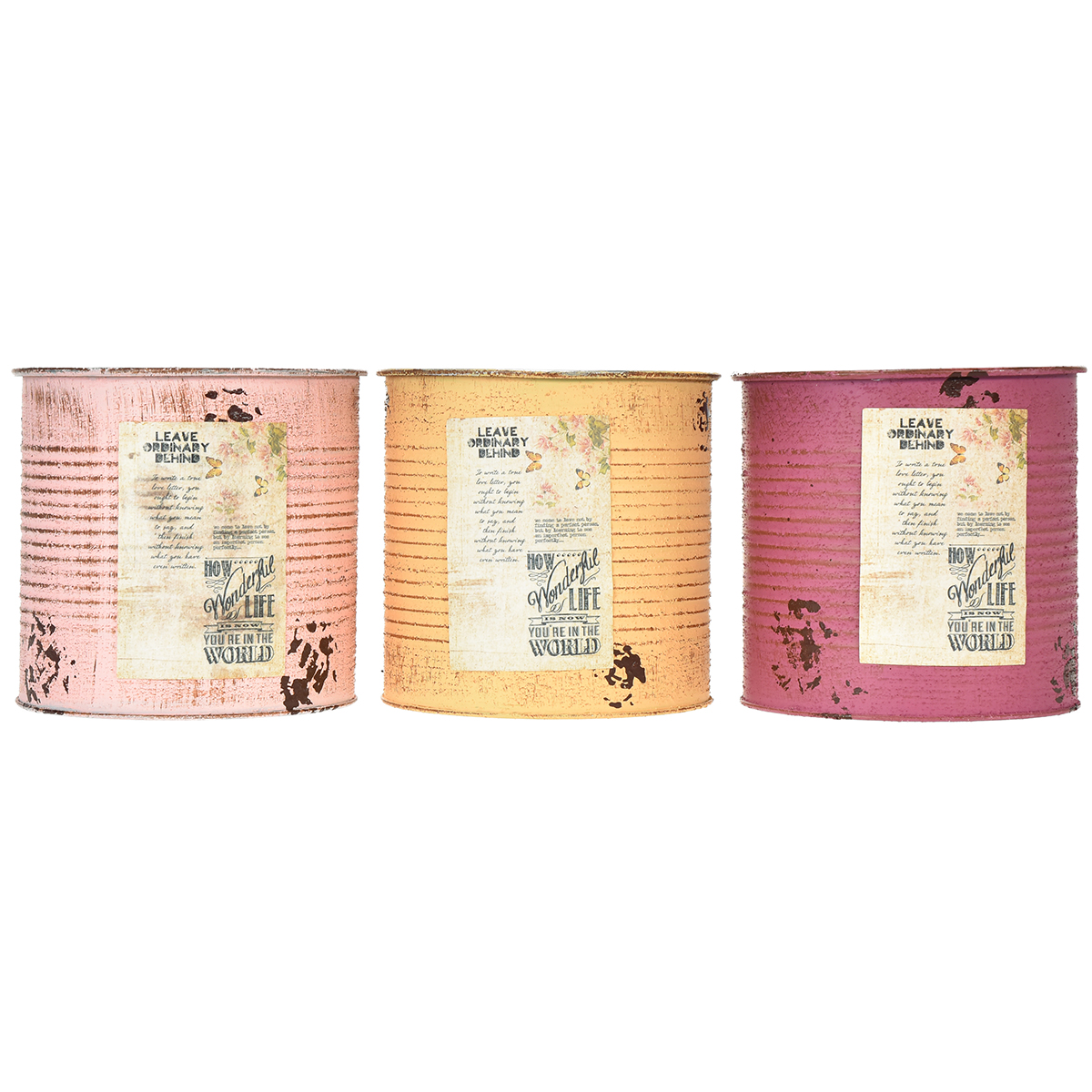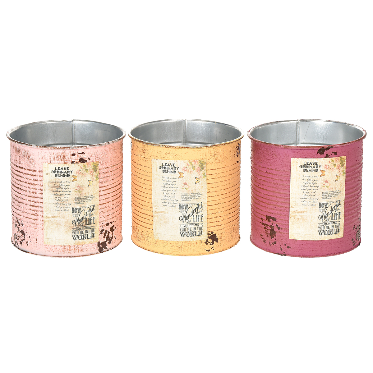 Blomsterpotte/blikk i vintage-stil, sett med 3