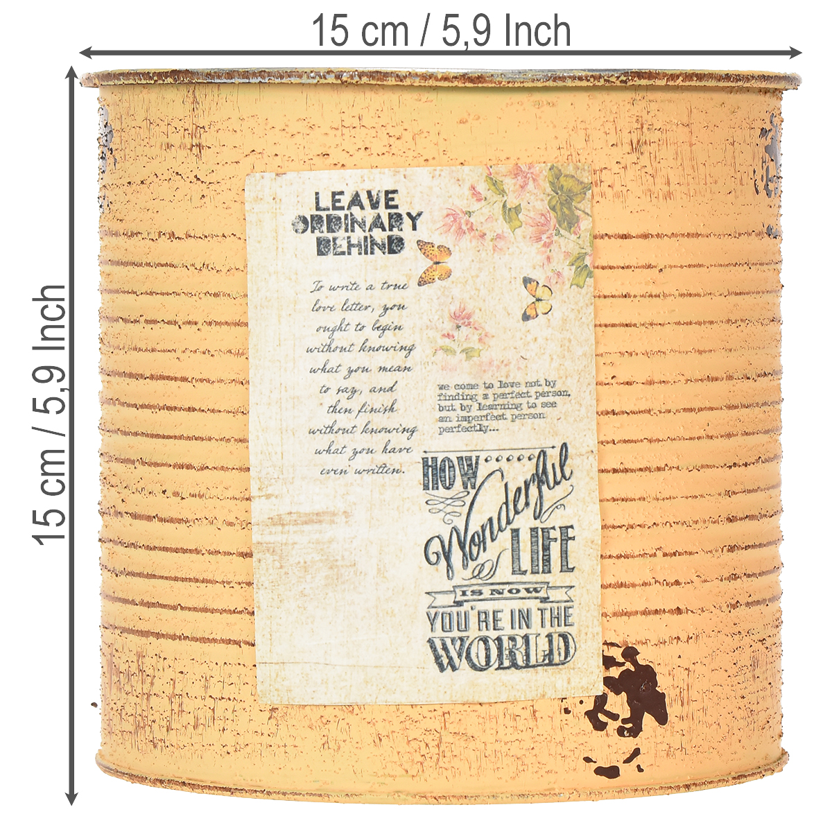 Denne kjærlig designede blomsterpotten i vintage-stil vil gjøre ethvert dekorasjonsprosjekt til et spesielt høydepunkt. Takket være retro-aksentene og de malte rusteffektene skaper disse unike plantekassene en koselig atmosfære – perfekt for landlig stil eller en rustikk setting. Kombinasjonsmulighetene er nærmest uendelige – enten som en dekorativ plantekasse for stueplanter, foret med folie som plantekasse, som en DIY-vase for tørkede blomster eller som en arrangør for penner og små tilbehør. Hver boks er 15 centimeter høy og et sant multitalent.