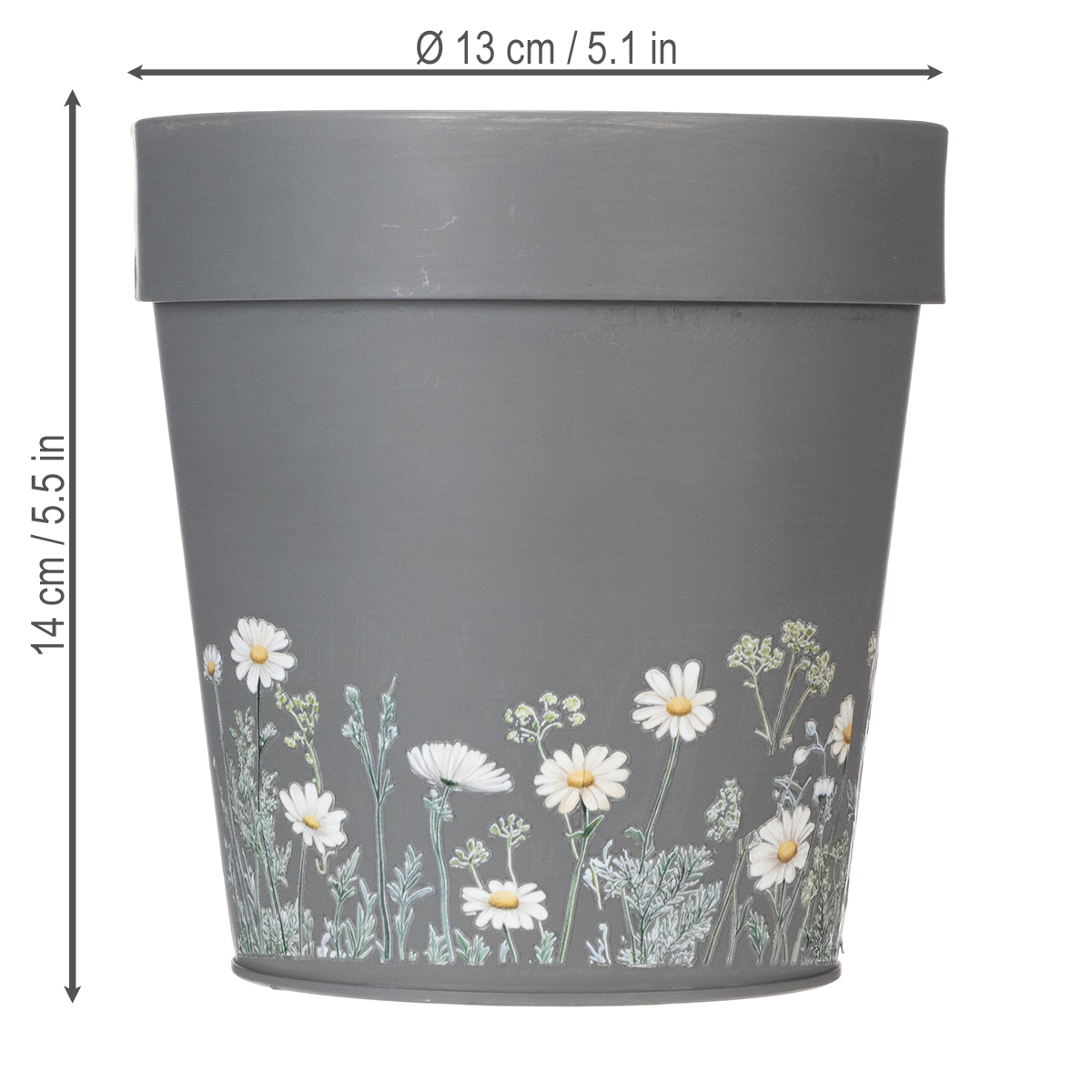 Blomsterdesignet til denne elegante grå blomsterpotten gir et rent og moderne preg til ethvert miljø. Inspirert av skandinavisk interiørdesign, imponerer denne potten med en fantastisk blanding av enkelhet og oppmerksomhet på detaljer. De sjarmerende blomstertrykkene er tidløse og skaper et harmonisk utseende med interiøret ditt. Blomsterpotten er laget av robust, men lett metall, og er slitesterk. Fullstendig rustmotstand kan imidlertid ikke garanteres når den brukes utendørs eller i kontakt med vann.