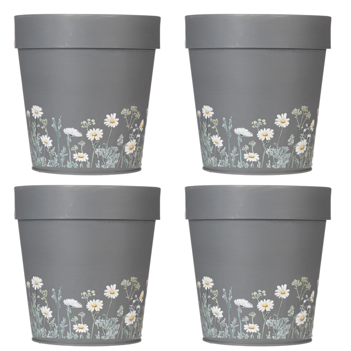 Med en høyde på 14 cm og en diameter på 13 cm er denne potten ideell for små planter som sukkulenter, miniorkideer og sesongens blomsteroppsatser. Den fungerer også som en flott urtepotte i vinduskarmen. Denne grå blomsterpotten med blomstermønster er praktisk, lettstelt og visuelt tiltalende, og skaper en vakker kontrast til grønne eller fargerike planter. Settet med fire potter lar deg også skape et harmonisk utseende i flere rom i hjemmet ditt eller gi passende hjem til forskjellige planter.