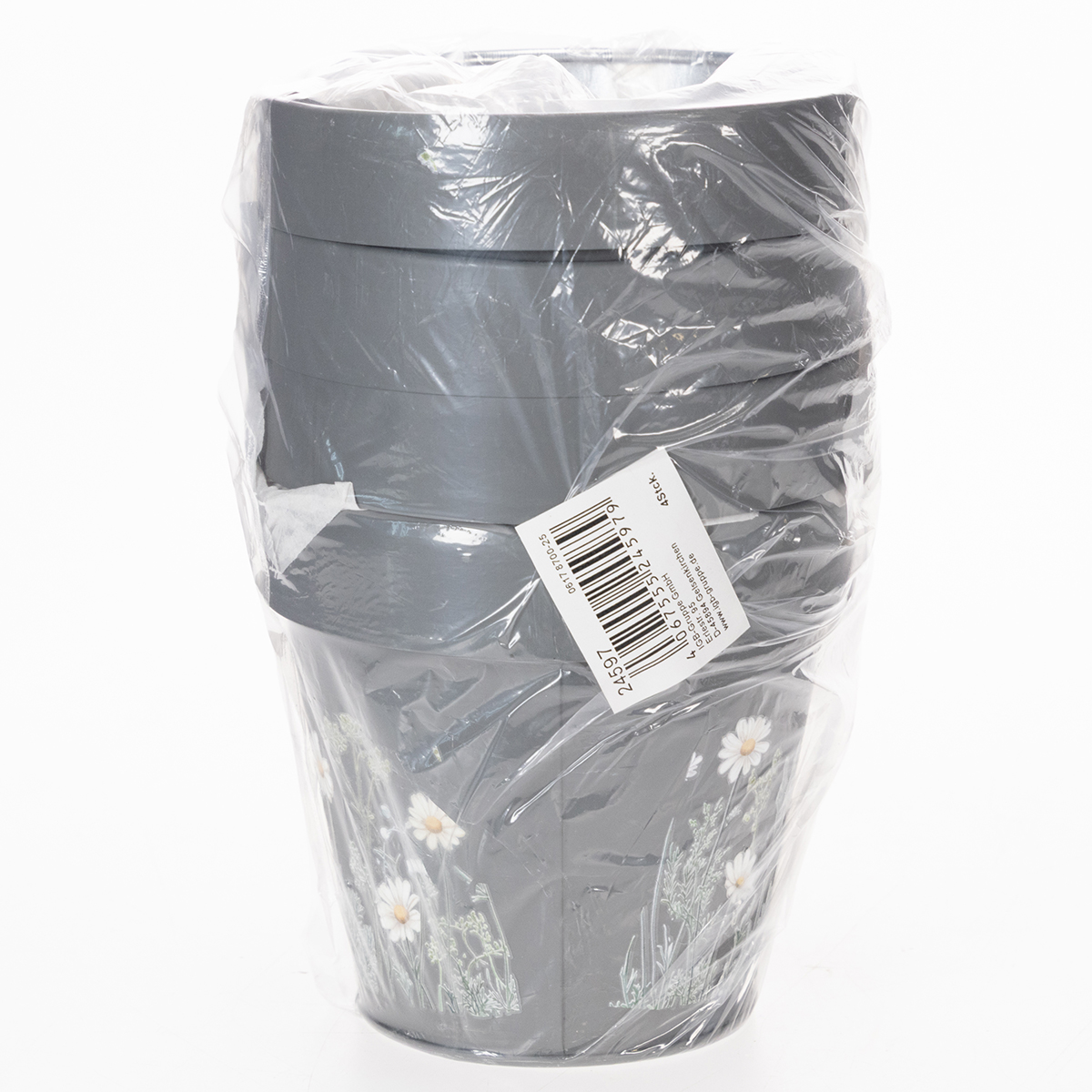 Denne dekorative blomsterpotten med tusenfrydmotiv vil gi interiøret ditt et friskt pust. Enten den er i vinduskarmen, en hylle i stuen eller et skrivebord – det subtile grå designet passer harmonisk inn i ethvert miljø. Det sjarmerende blomstermotivet gir et preg av natur og livsglede til ethvert rom. Fire potter i et sett – slik at du kan skape flere innbydende oaser. Praktisk og lett, laget av solid metall, er denne blomsterpotten ikke bare vakker, men også overraskende allsidig. Et lite høydepunkt som kombinerer stil og funksjonalitet!