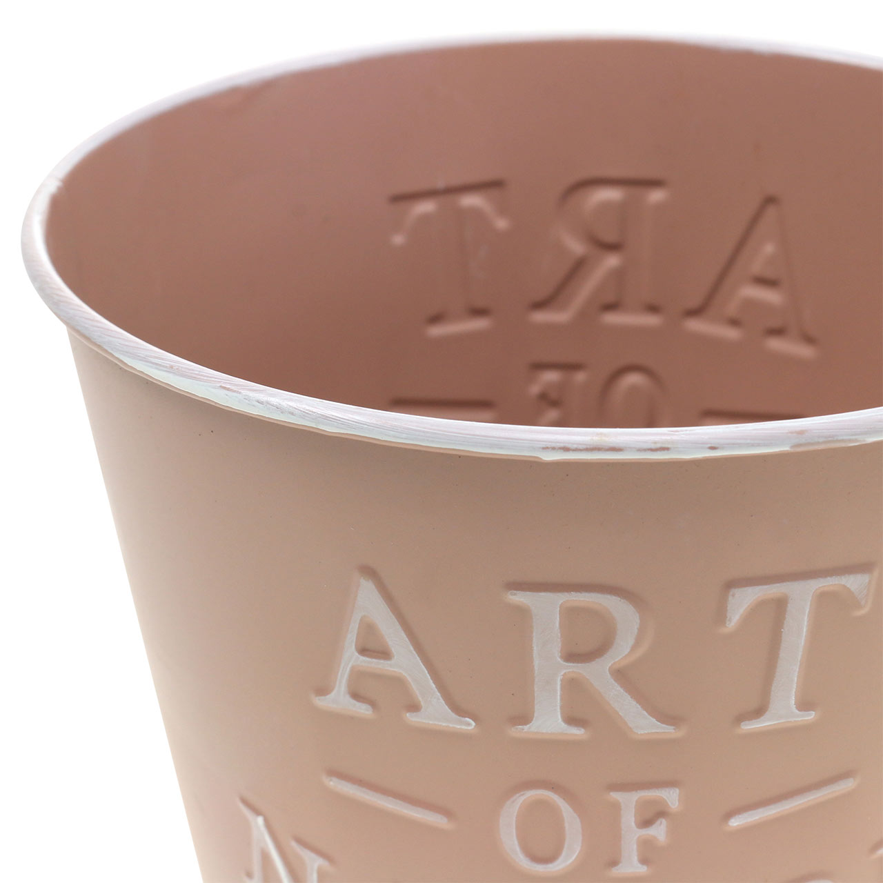 Den lille sinkblomsterkruken merket "Art of Nature" har en omtrentlig diameter på 15 centimeter øverst. Sinkfartøyets høyde er rundt 13,5 centimeter.