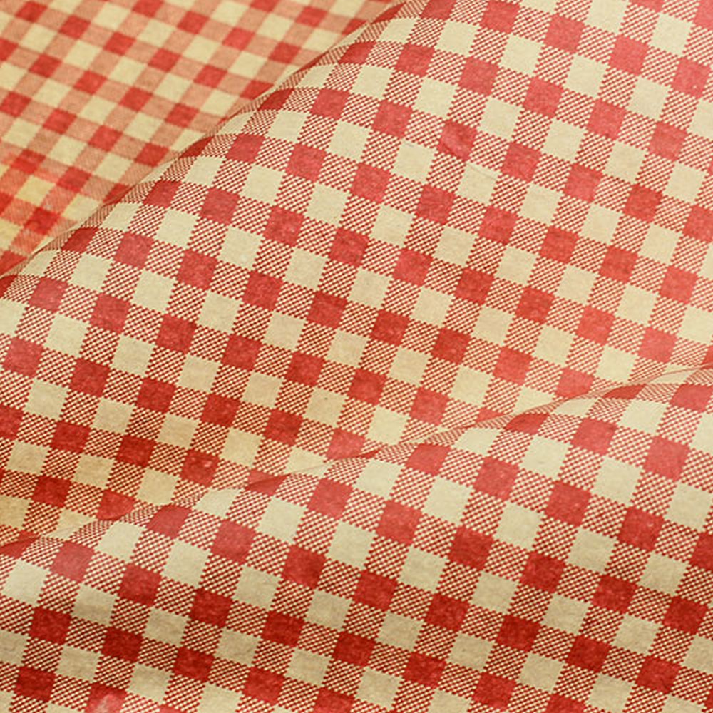 Blomstersilken med rødrutemønster er på en rull med en totalvekt på 8 kilo. Innpakningspapiret har en bredde på ca 75 centimeter. Vektvekten er mellom 30 og 35 gram per kvadratmeter. Plastinnsatsene gjør at den kan festes til en dispenser.