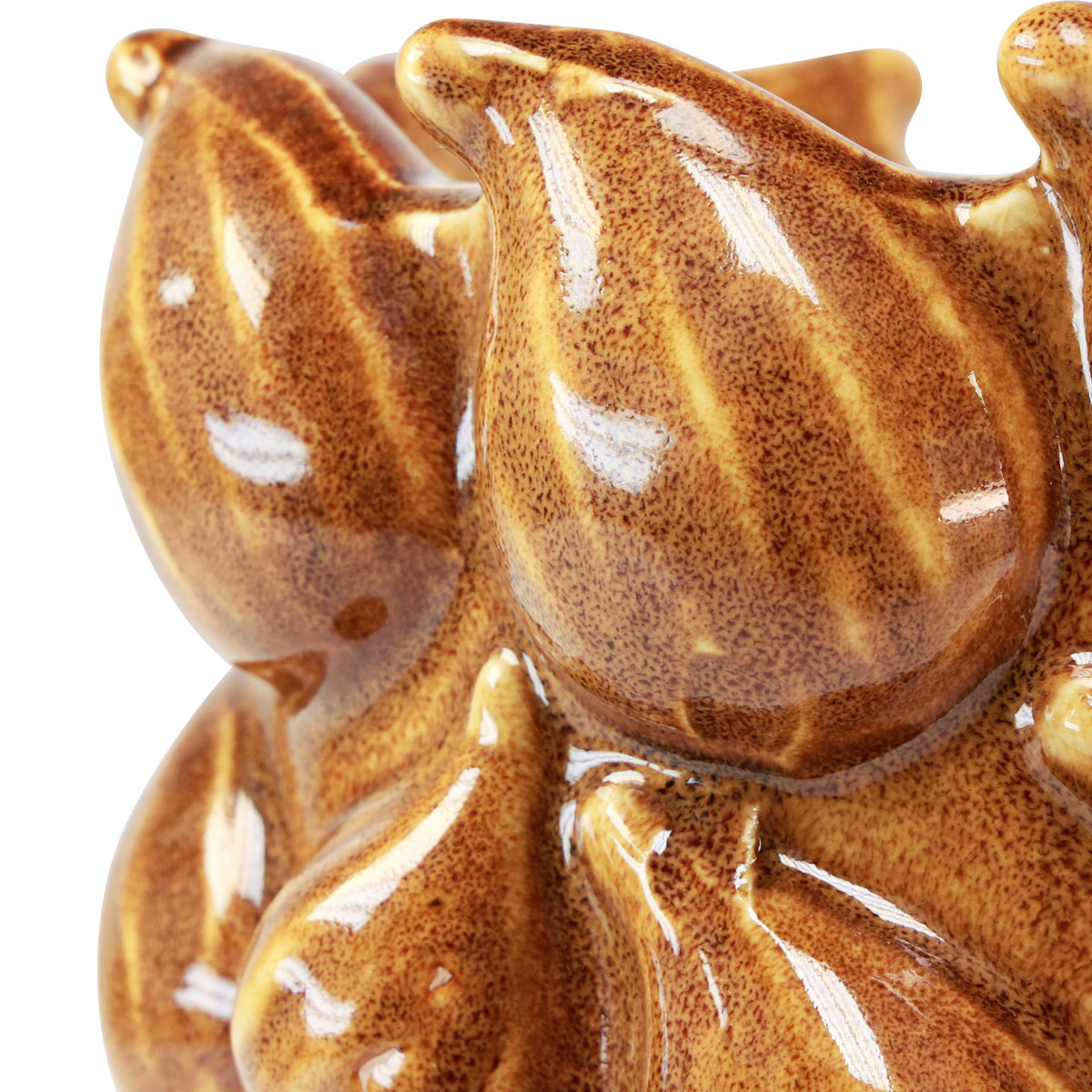 Fikenene er levende og detaljert avbildet som fyldige frukter som har litt forskjellige former og størrelser. Dette skaper et ekstremt interessant mønster på den brune keramikken, spesielt siden stripene på skallet av fikenen til og med kan sees på glasuren til vasen.