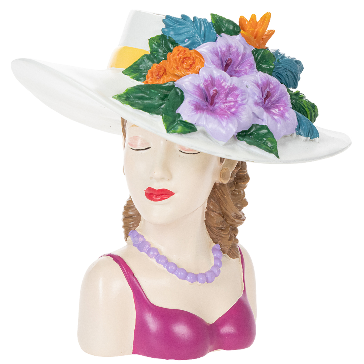 Blomstervase kvinne i hatt med blomster plantepottedekorasjon for innendørs og utendørs bruk 20 cm
