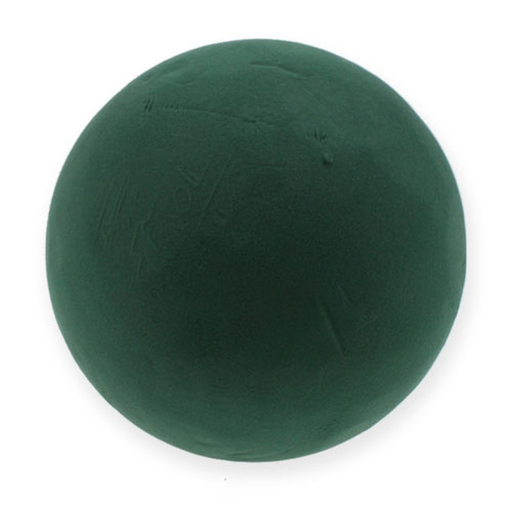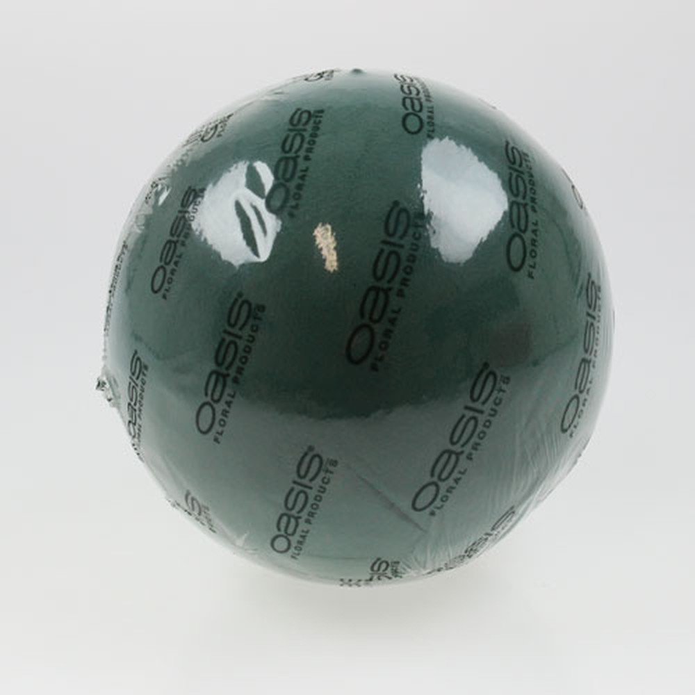 Den store Ideal Maxlife-kulen fra OASIS® er pakket inn i en plastfilm. Det våte blomsterskummet har en diameter på omtrent 25 centimeter. Selvfølgelig kan du jobbe ballen med en kniv på en veldig kreativ måte. Det er også mulig å hule ut eller skjære ut ansikter.
