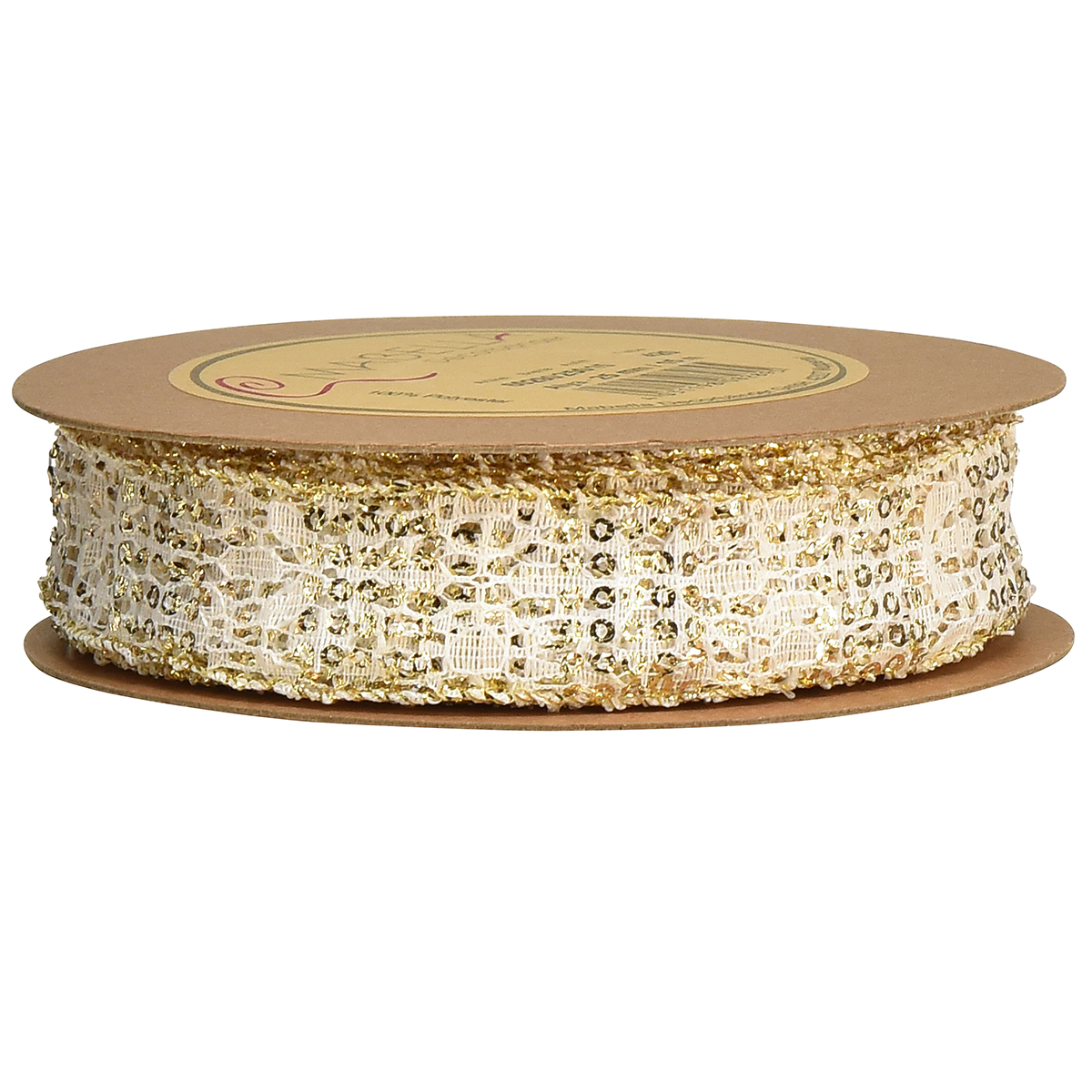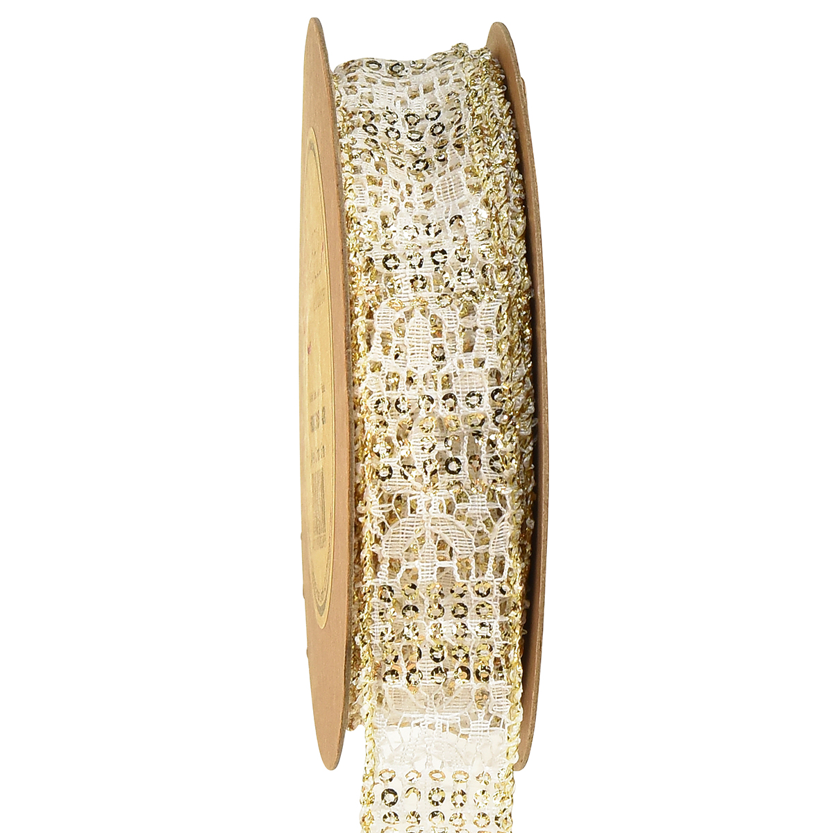 Produktnavn: Blondebånd hvit med gullaksenter dekorativt bånd blonder 25mm 15m