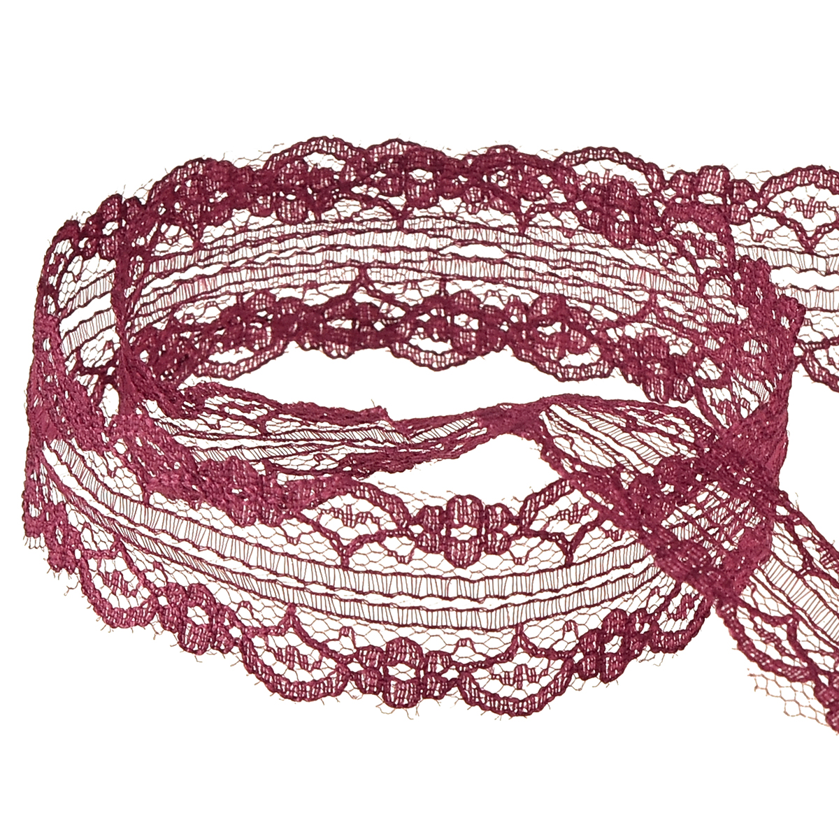 Produktnavn: Blondebånd med blomster dekorativt bånd Bordeaux B25mm L25m