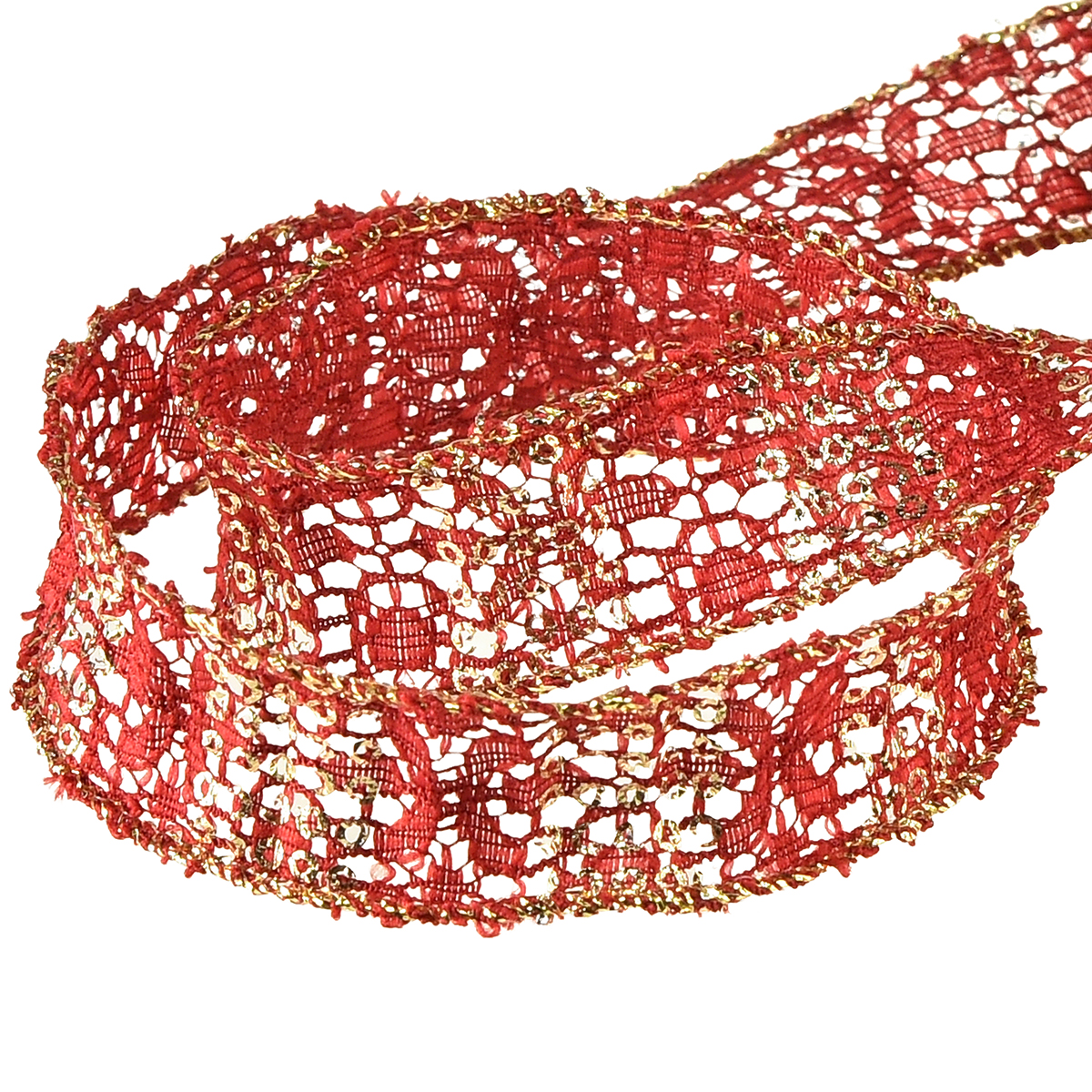 Oppdag det glitrende blondebåndet i rødt og gull for festlige dekorasjoner