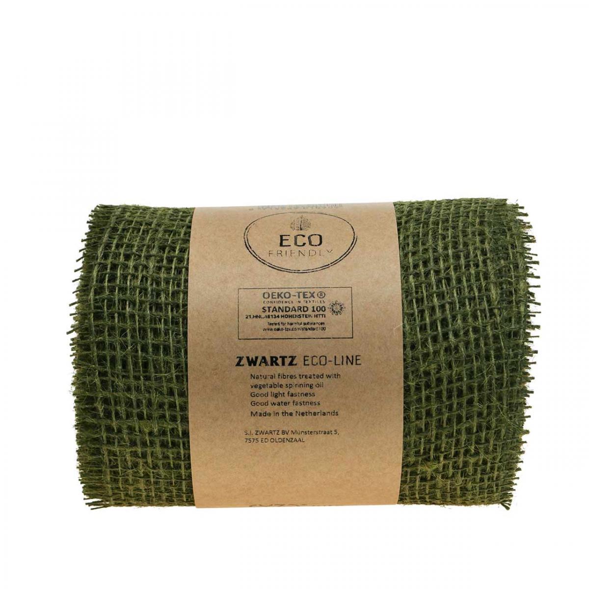 Jutebåndet i olivengrønt er tilgjengelig som en praktisk rull med en lengde på ca 10 meter og en bredde på 15 centimeter.