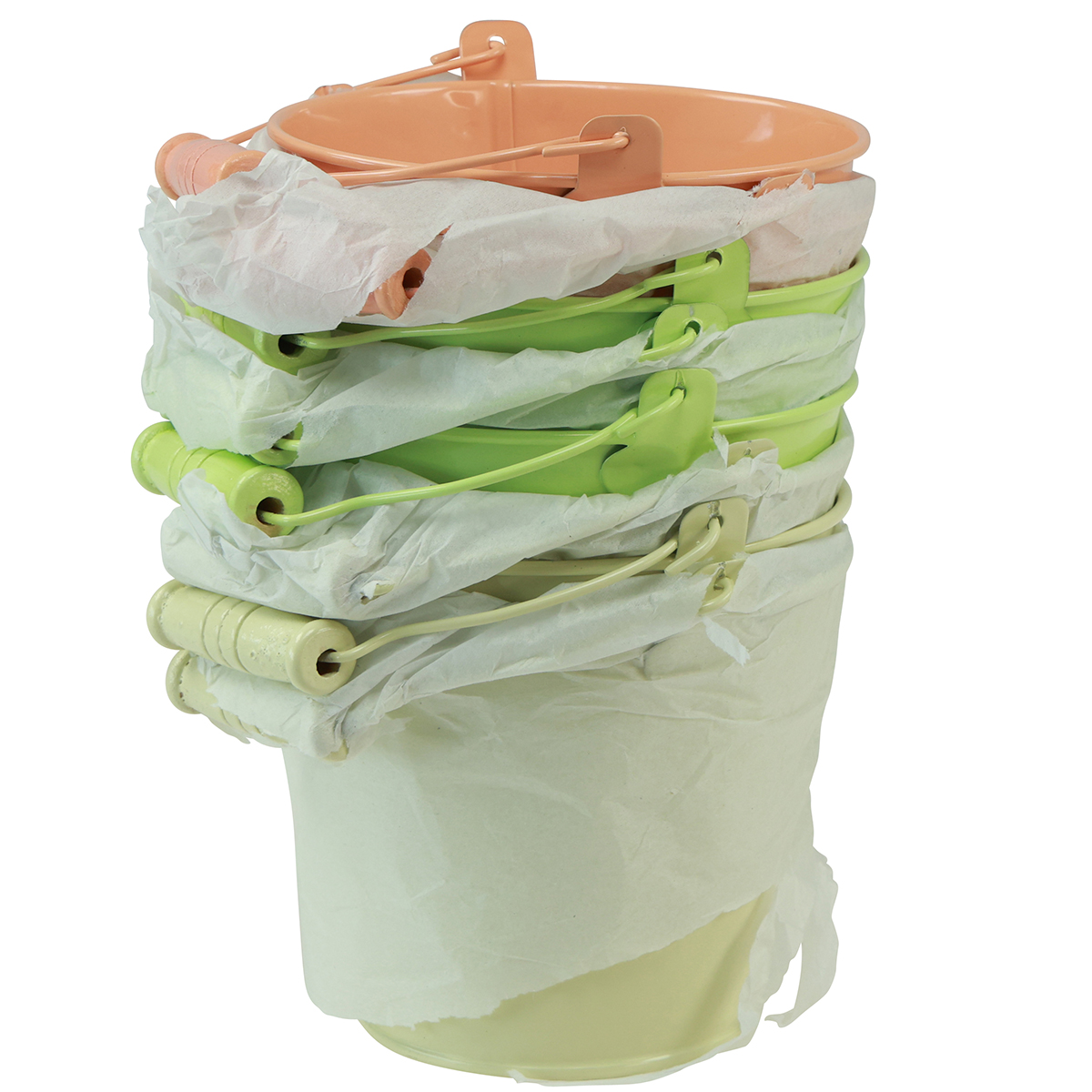 Størrelsen er ideell for bruk som blomsterpotte eller for å presentere små godbiter og påskepynt. Du kjøper et sett med 8 av disse bedårende dekorative bøttene, med fargene jevnt fordelt. La kreativiteten løpe løpsk og bruk dem som plantekasser, blomsterpotter eller som en del av et større dekorativt arrangement.
