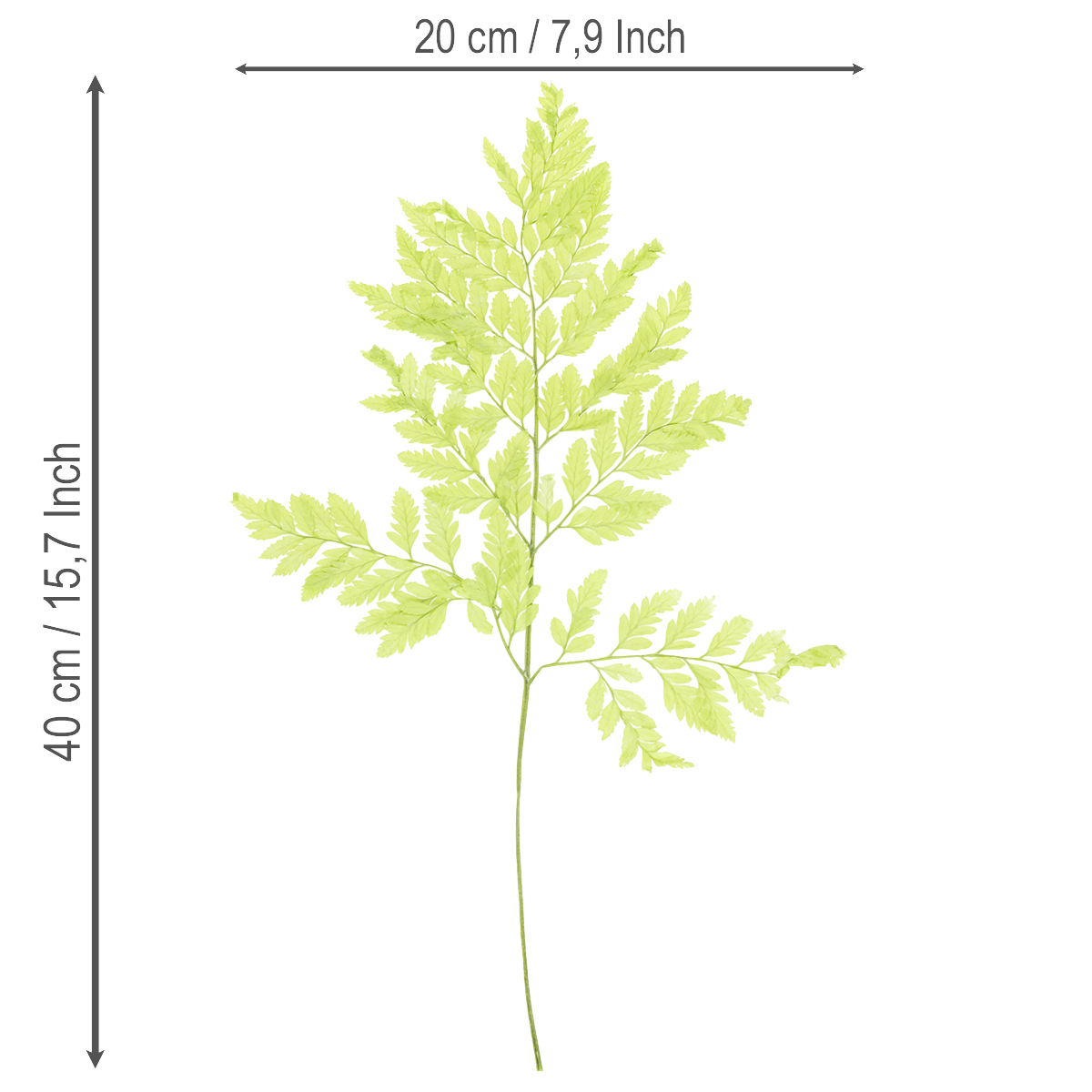 Dette settet inneholder ti stilker, hver 40 centimeter høye. Den delikate teksturen og lysegrønne fargen til de tørkede bregnene passer perfekt sammen med andre materialer som tre, glass eller keramikk. Bruk disse plantene som langvarige bregnedekorasjoner i hjemmet ditt for å skape en naturlig og innbydende atmosfære. Oppdag de utallige designmulighetene og la kreativiteten få fritt spillerom!
