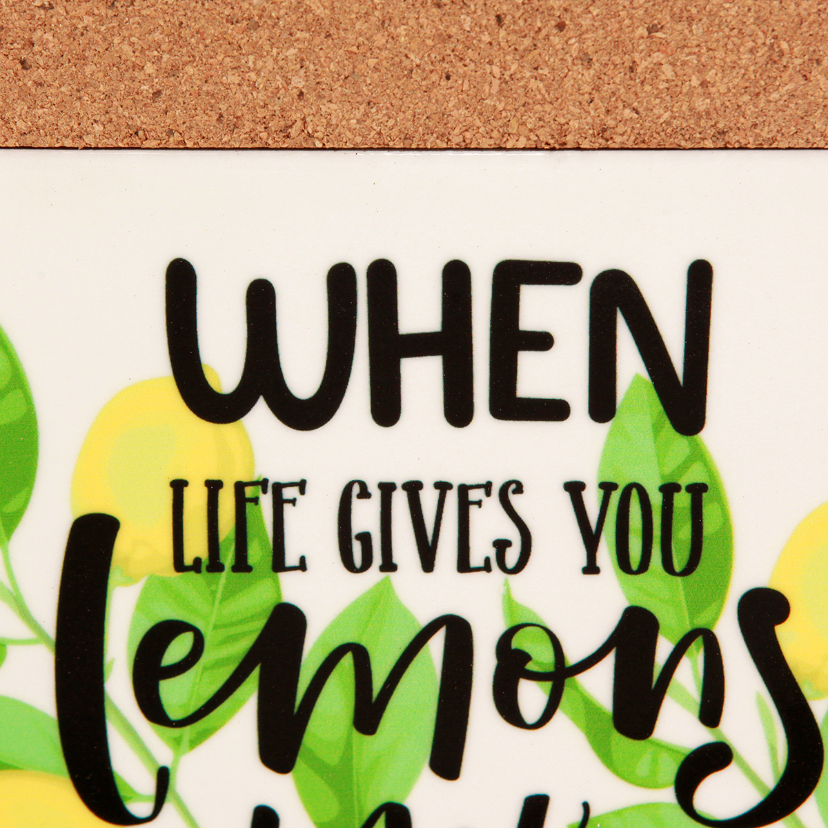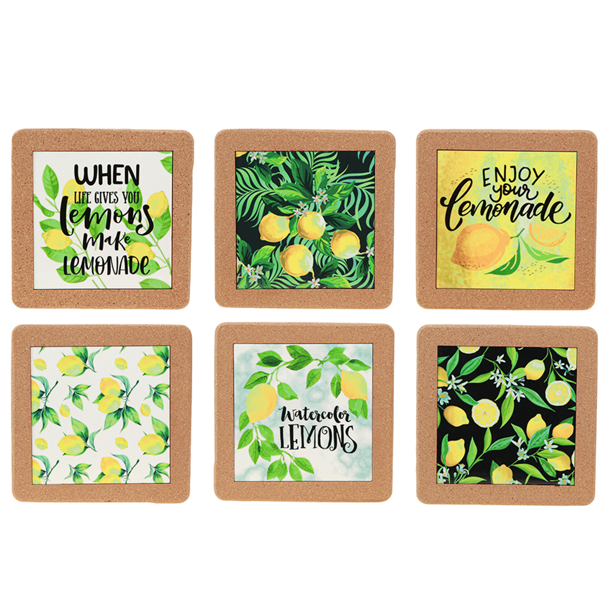Produktnavn: Brikker med sitroner, kork, keramikk, sommer, assortert, 19,5 cm, 6 stk.