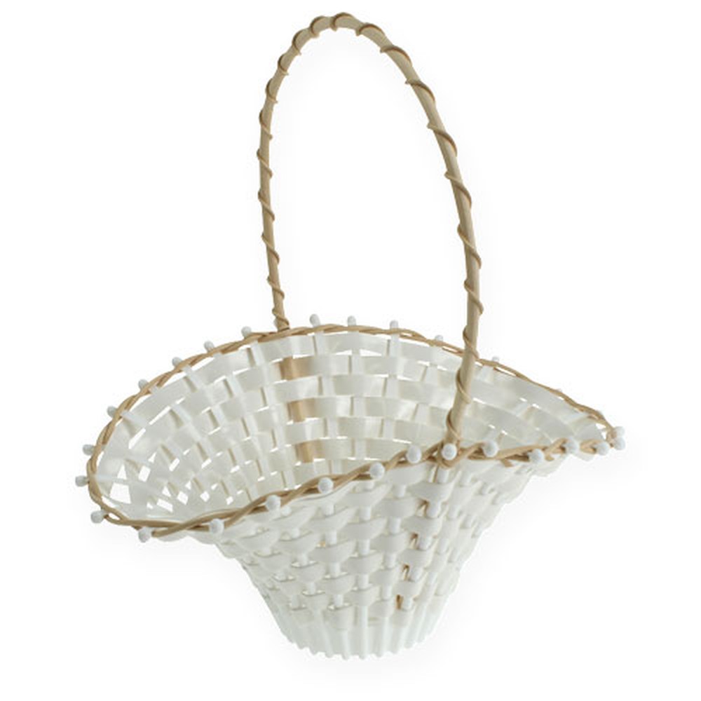 Denne fortryllende bryllupsstrøkurven, skreddersydd for den spesielle anledningen, vil legge til et snev av eleganse og romantikk til seremonien din. Med en størrelse på 24 cm x 17 cm gir den nok plass til spredte blomster som forvandler brudeparets vei til et blomsterparadis. Kurven, laget av hvit, vevd plast med bleket rottingkant og håndtak, imponerer med sitt enkle, men likevel grasiøse utseende. Ideell for blomsterbarn, "White Wedding Scatter Basket" smelter harmonisk inn i enhver bryllupsdekorasjon og understreker vintage-sjarmen til din store dag. Fra klassiske til moderne bryllup, denne dekorative kurven utfyller temaverdenen din perfekt. Sett stilige aksenter med dette elegante tilbehøret og la bryllupsbildene dine skinne.