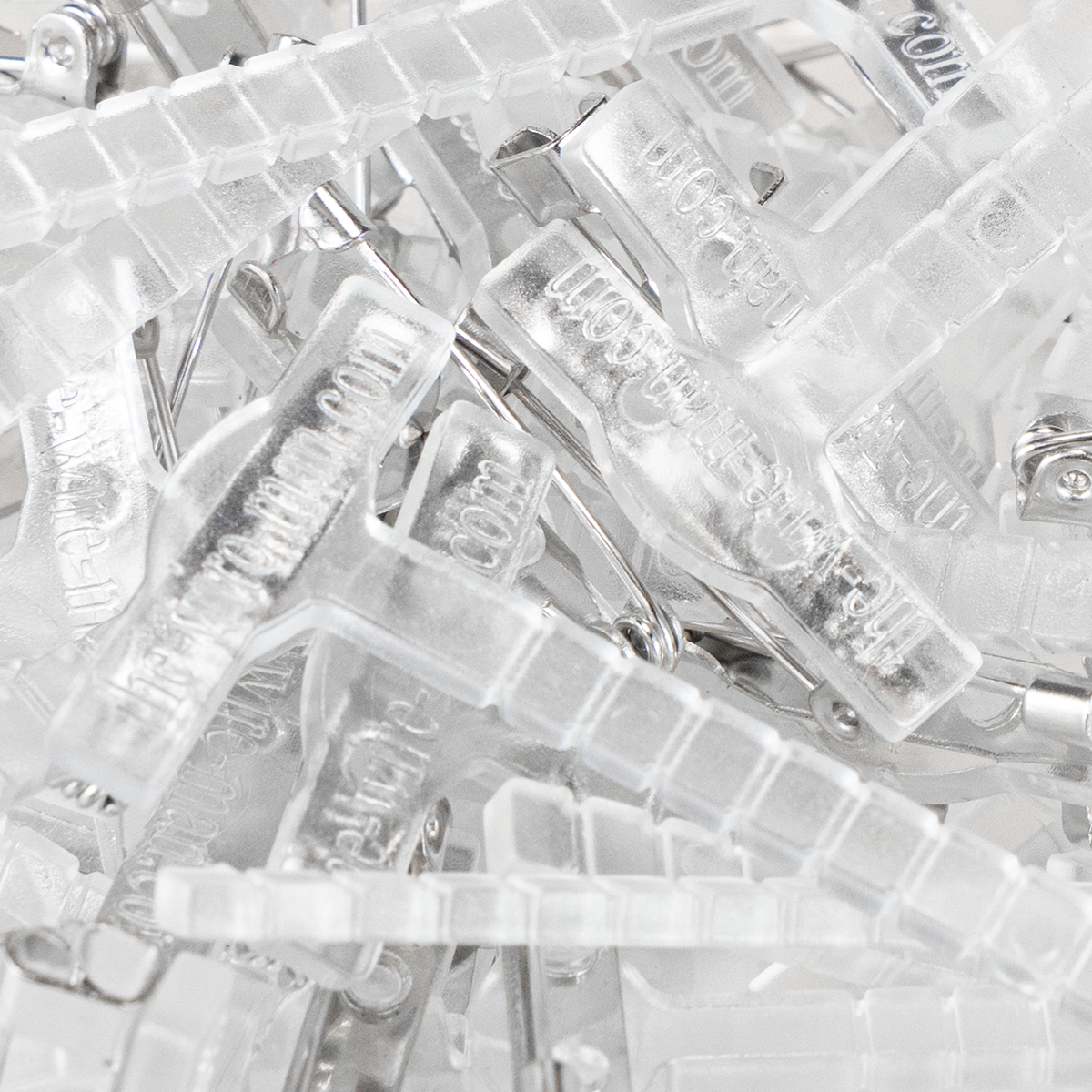 Bryllupsnålen laget av gjennomsiktig plast og en sølvnål leveres i en eske med totalt 50 stykker og har en lengde på omtrent 5 centimeter. Du kan også bruke merket til å feste navnelapper til et verksted, små figurer til et temafest eller blomstersmykker til en festkveld.