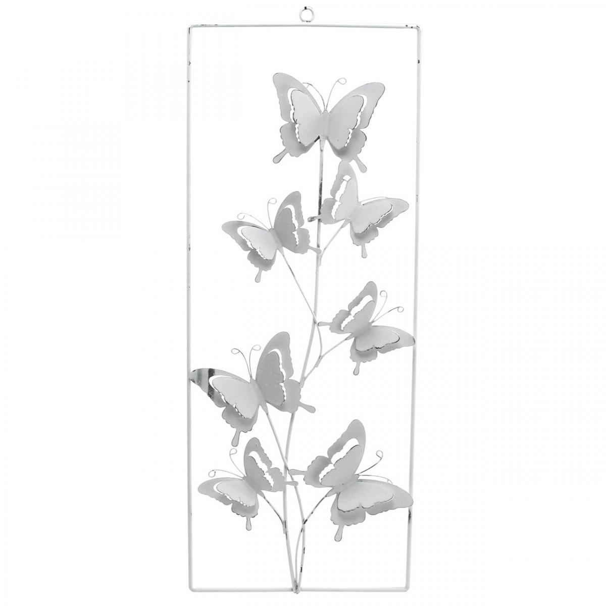 Produktnavn: Butterfly Hanging Art Spring Metall Vegg Art Shabby Chic Hvit Sølv H47.5cm