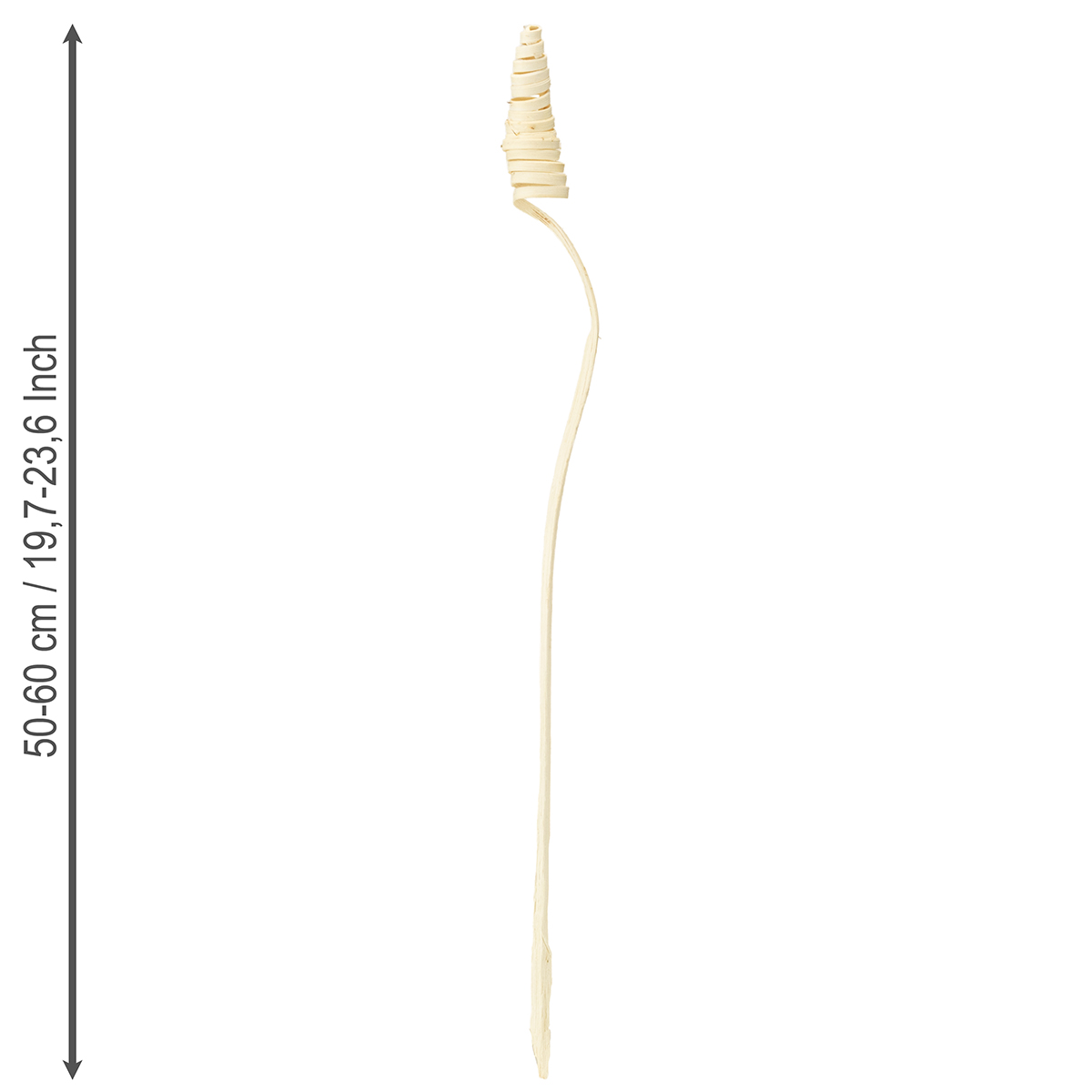 Cane Cone-trespiralene blekes for et edelt utseende og leveres i et sett på 25 stykker. Siden dette er naturlige produkter, kan håndtakslengdene variere. Trepinnene er mellom 50 og 60 centimeter lange.